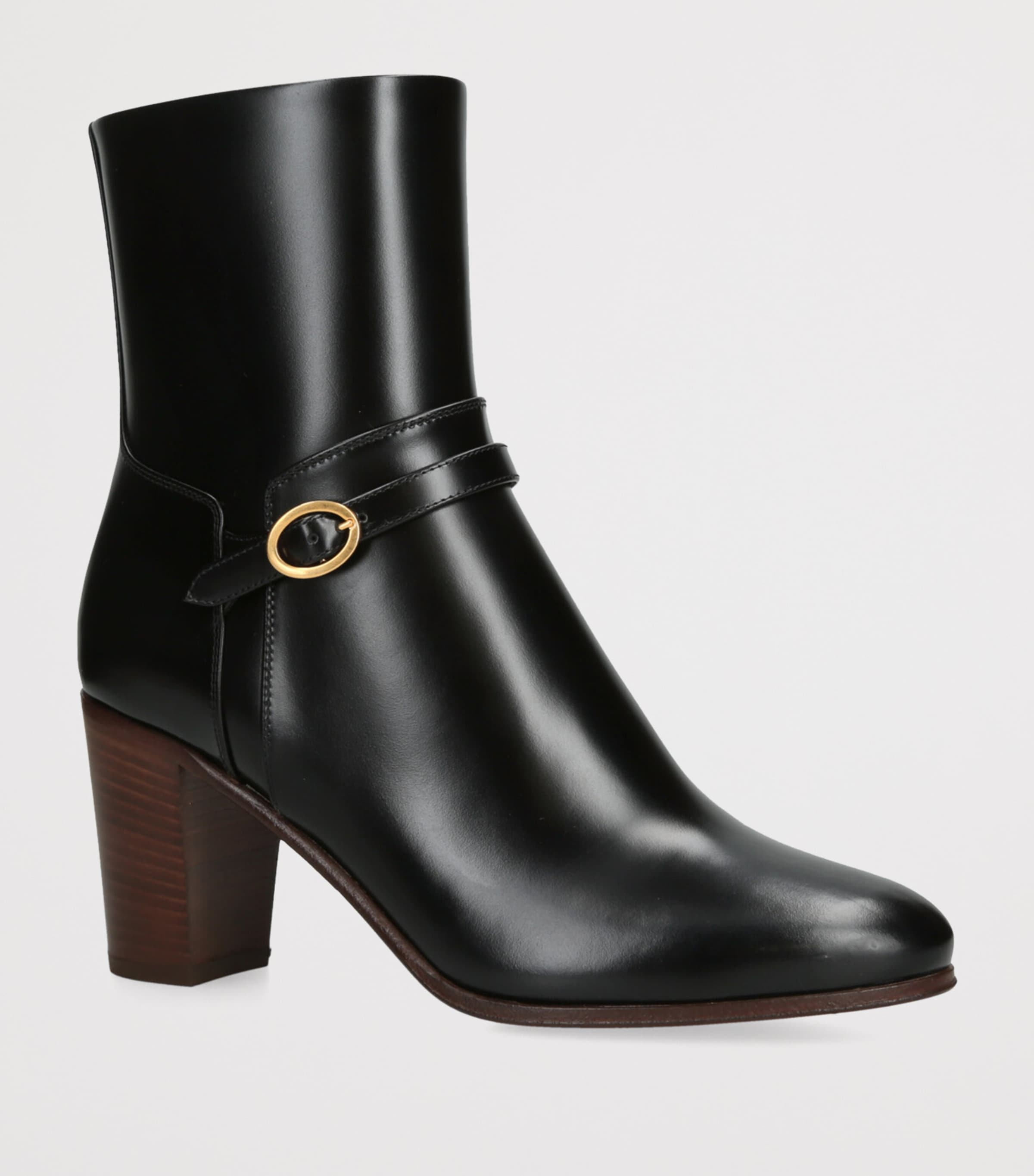 Valentino Garavani Black Leather Pattie Heeled Ankle Boots 75