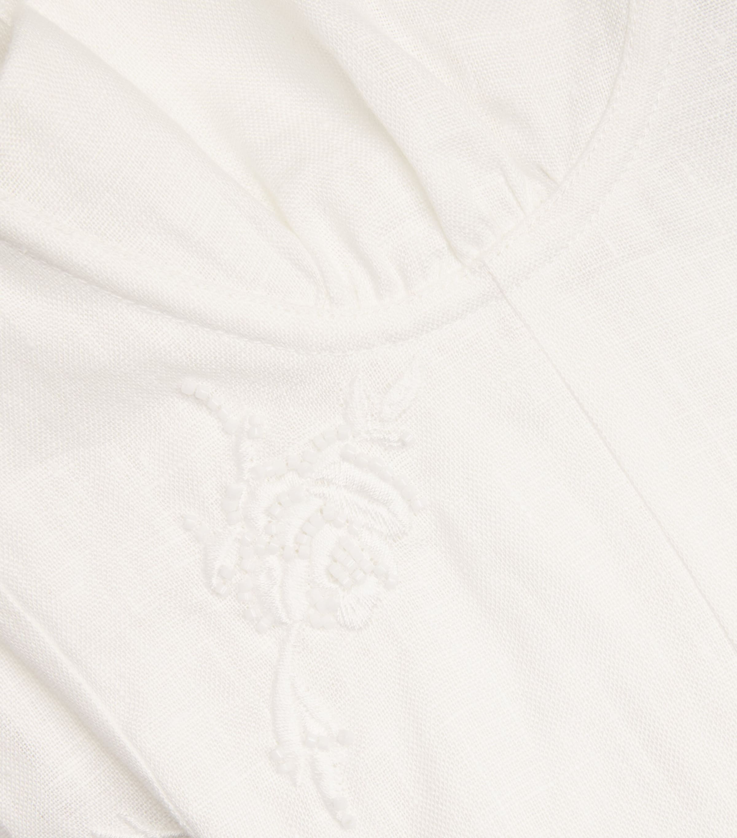 Achieved through contemporary minimalism, SIR.’s aspirational universe is one that’s effortless and nonchalant. Embodying this, the Alessandra midi dress is crafted from the label’s signature midweight linen, with embroidered beaded floral motifs and gathered underwired bust cups enhancing its romantic allure.