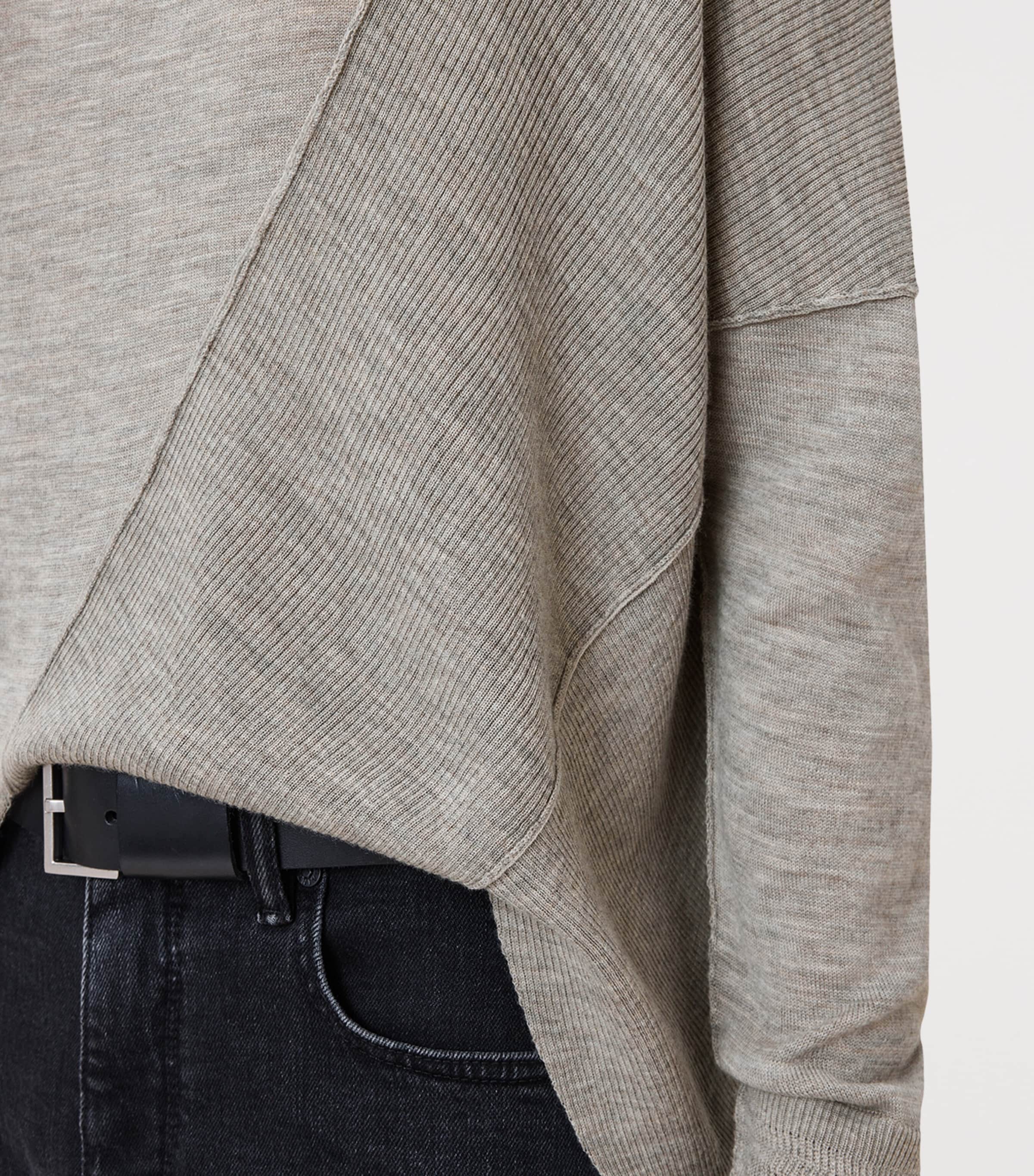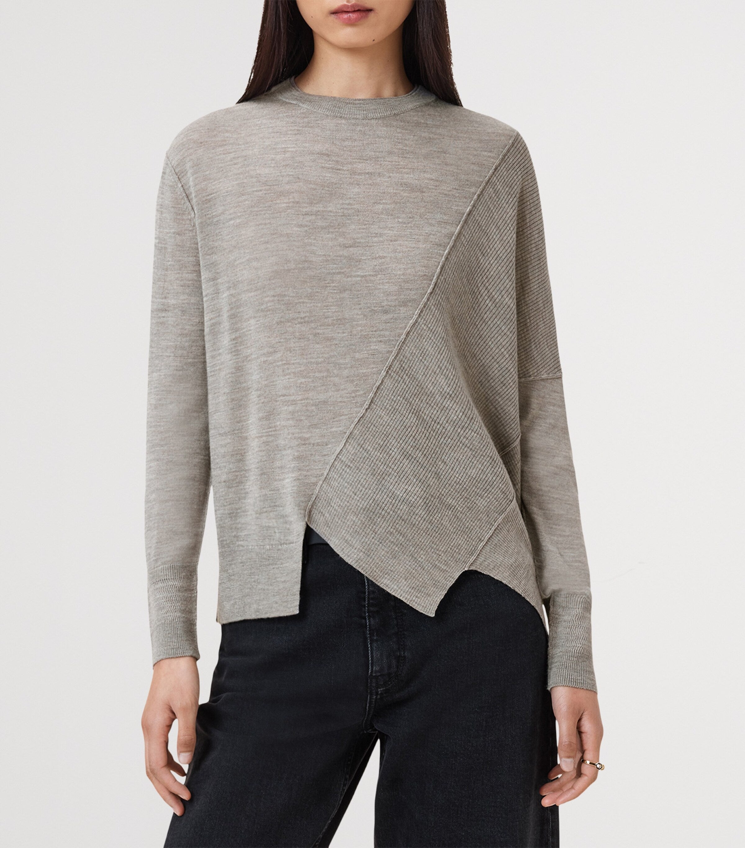Keeping you on your toes while channelling its rebellious spirit, AllSaints likes to subvert the ordinary – its knitwear included. Here, it lets its experimental nature take flight with the Isla sweater, deconstructing its soft wool panels to create an asymmetric silhouette that adds both comfort and drama to any casual ensemble.