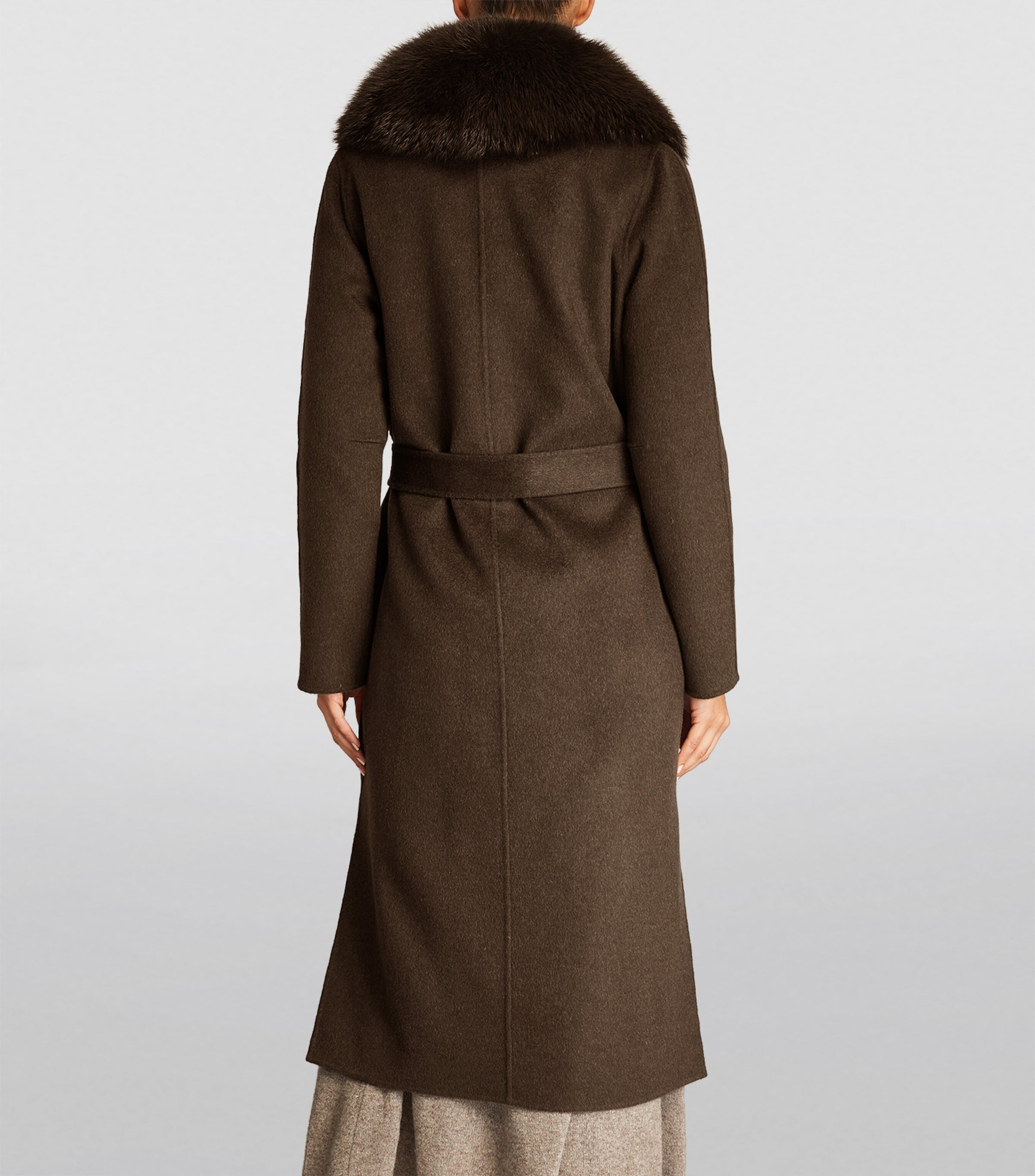 • Composition: 90% Wool, 10% Cashmere, Lining: 100% Silk, Trims: 100% Fox Fur