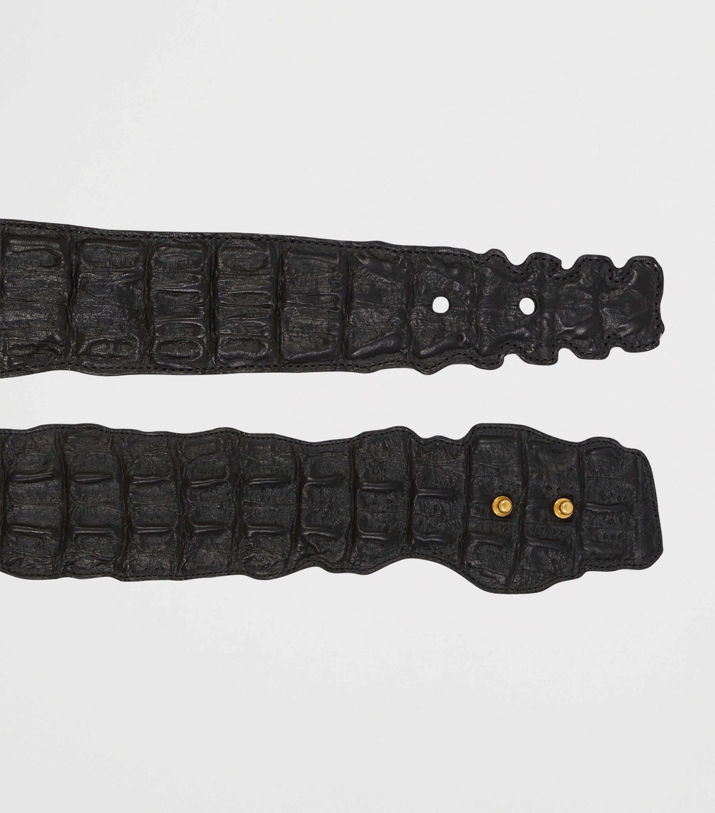 Balmain distils reptilian power into this crocodile-print belt; its sculpted surface and sharply shaped silhouette recalling the primal strength of the wild. Meanwhile, its twin studs glint like glowing eyes, locking in a statement of untamed confidence.
