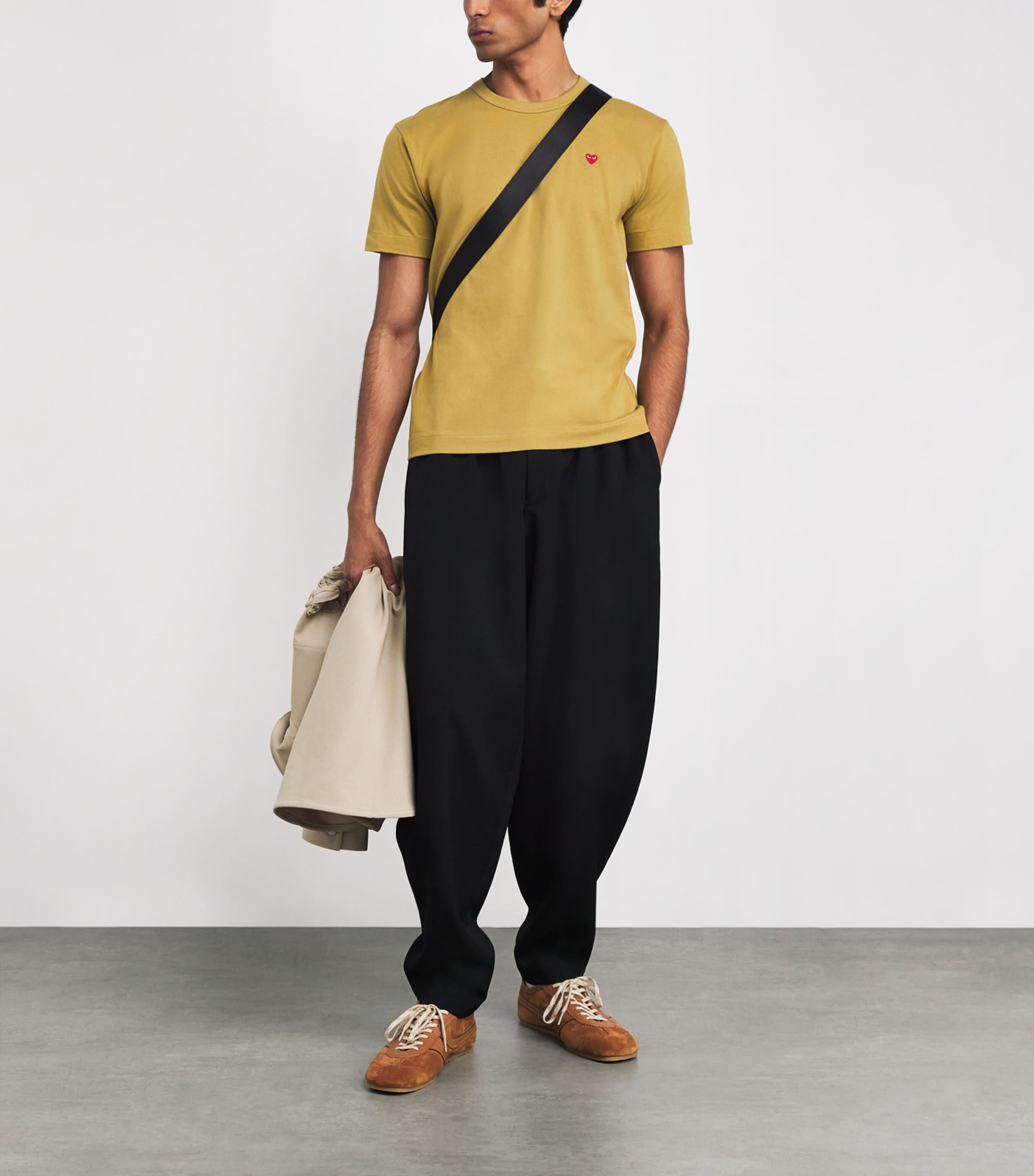 The Comme des Garçons PLAY logo is the product of Rei Kawakubo’s unique creative process; rather than commissioning specific graphic designs for a specific garment or collection, the Japanese designer selects iconography from her previous projects, with the heart icon resurfaced from a previous independent art project with Polish graphic artist Filip Pagowski. Here, the playful emblem adorns one of the brand’s T-shirts, displaying your affinity for the Japanese label’s unique interpretation of streetwear.
