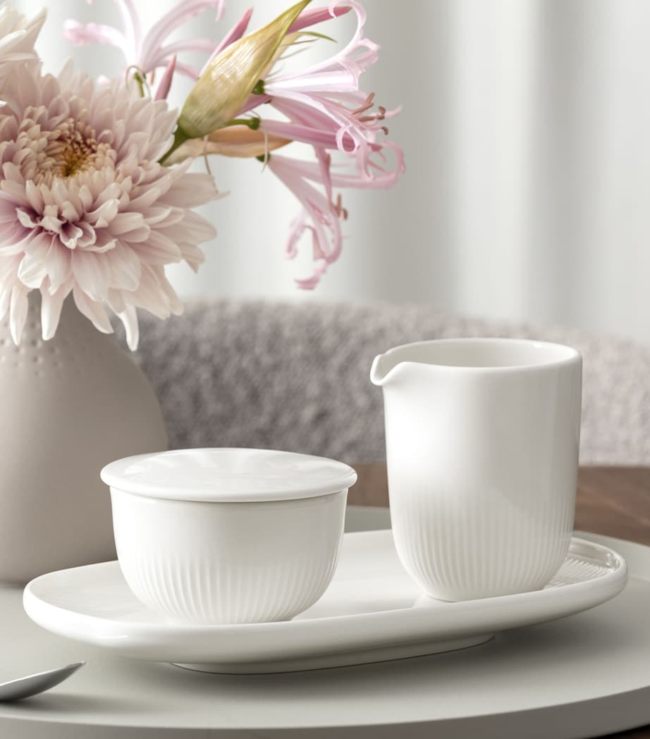 Villeroy & Boch’s tableware collections are often born out of artistic observation, and the Afina series is no different. Inspired by the pursuit of uniqueness and sanctuary, the designer combines minimalist shapes with delicate, handcrafted details to create the Afina cream jug, whose silhouette mimics concentric rays of sunshine via a tactile ring-shaped relief and concealed base.