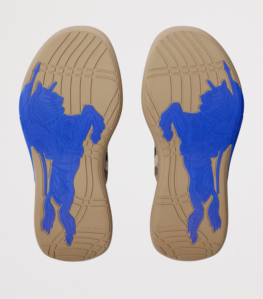 With Daniel Lee at the creative helm, Burberry continues to celebrate its iconic Burberry Check in new perspectives, bringing the heritage pattern into the contemporary with designs like the Neptune sneakers. Fitted with a B shield toggle, the pair complements a breathable knitted sock upper with a dynamic sole that flashes the Equestrian Knight Design with every comfortable step.