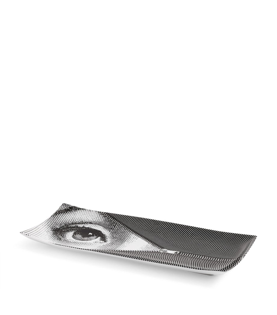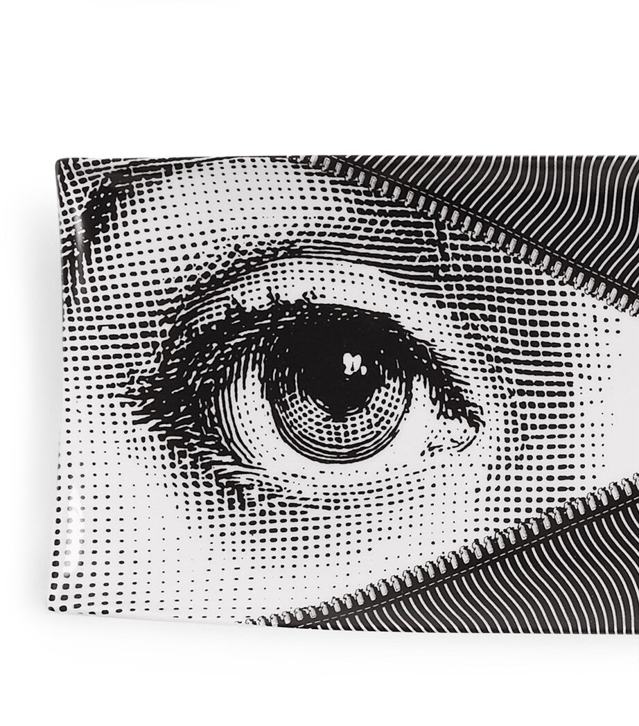 An eclectic addition to your tableware portfolio, Fornasetti's Tema e Variazioni rectangular tray is characterised by a conversation-starting design. Now something of a signature for the label, the playful collection depicts a disjointed feminine face, as this piece features an eye peering through a zipper, ensuring a unique addition to your tablescape. Crafted in Italy from fine porcelain, it’s ideal for serving crudités or side dishes.