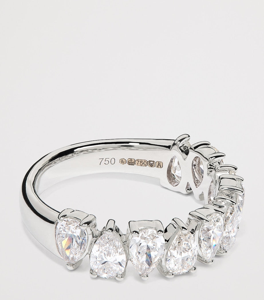 From Harrods' debut fine jewellery collection, this exquisite eternity ring showcases a row of pear-cut diamonds, symbolising everlasting elegance. Set in lustrous 18-karat white gold, each stone is meticulously placed to catch the light from every angle.