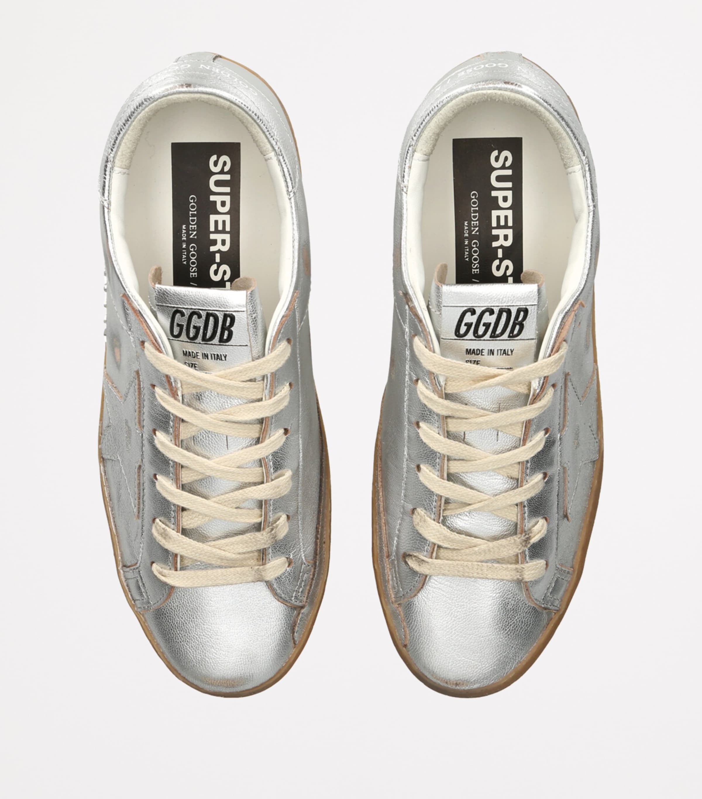 Golden Goose Silver Metallic Leather Super-Star Sneakers