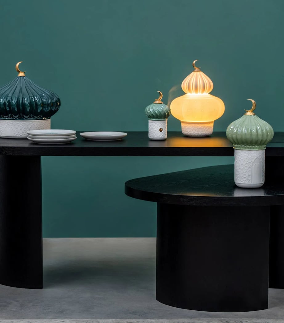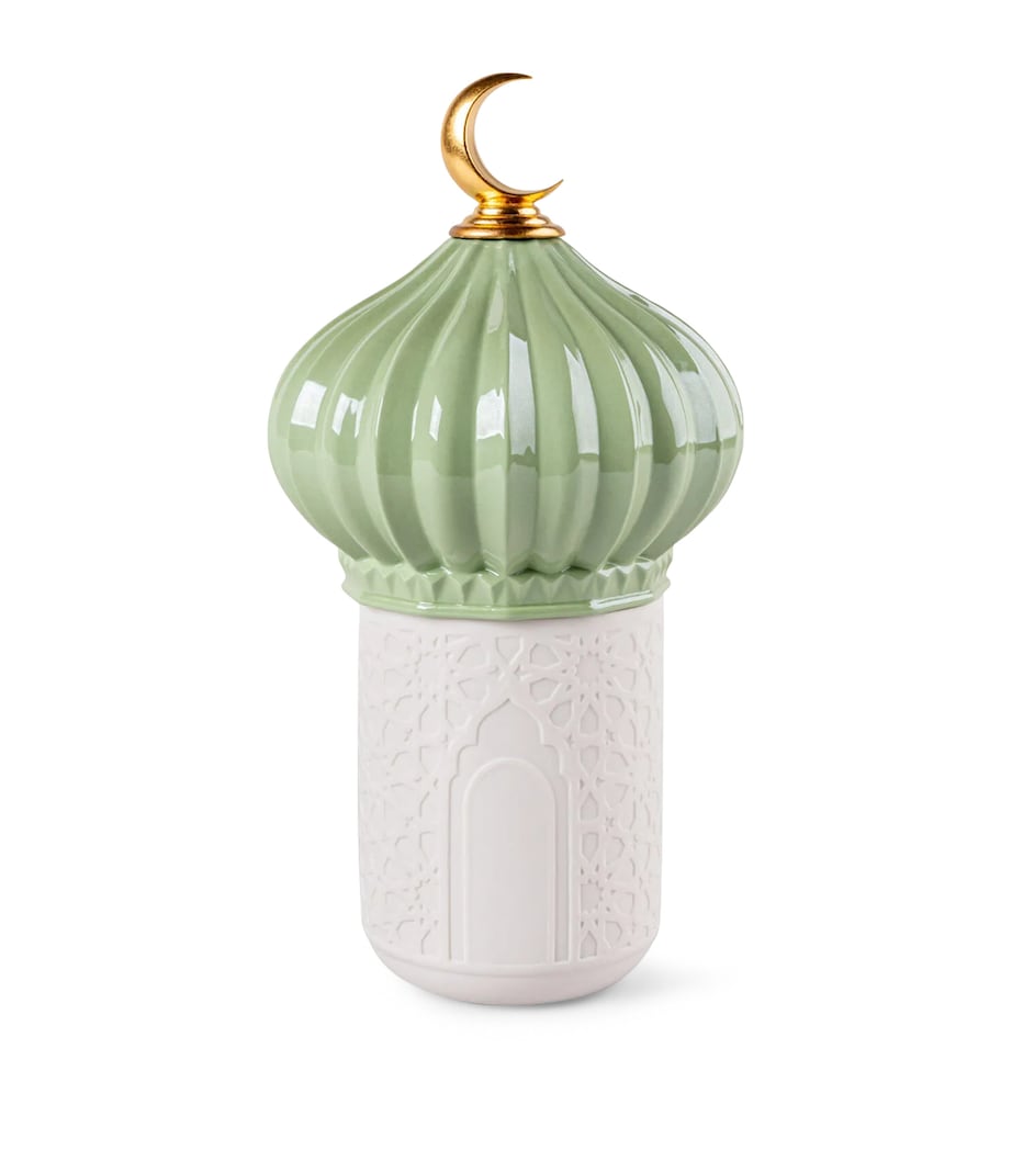 From Lladró’s Majestic Nights collection comes this diffuser, with a glazed porcelain dome based on the stories of the One Thousand and One Nights. Releasing scents of cassis, lotus flower and frankincense, this item is sure to fill your home with all the warmth and wonder of the Arabian Nights.