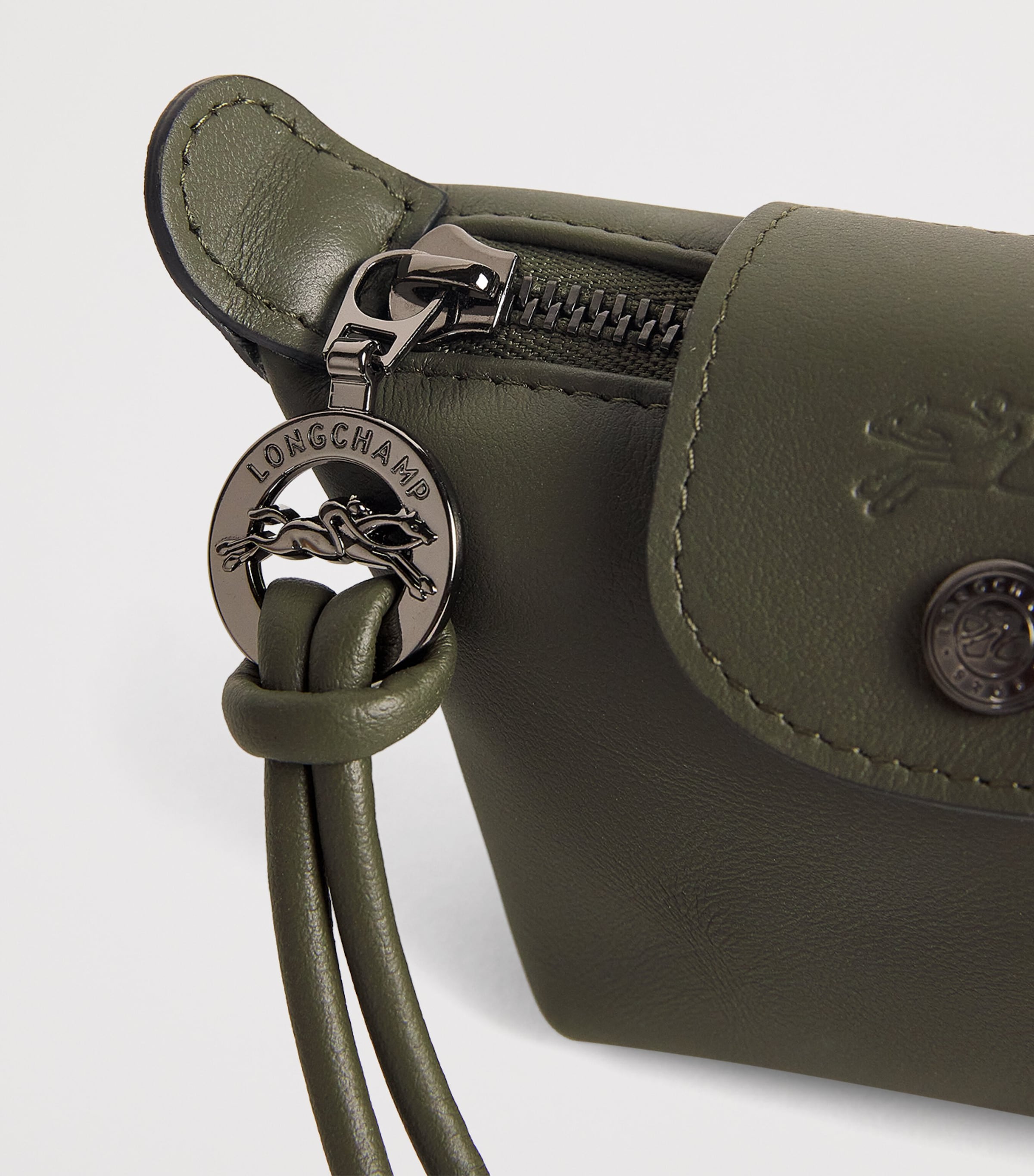 Longchamp Green Leather Le Pliage Extra Coin Purse
