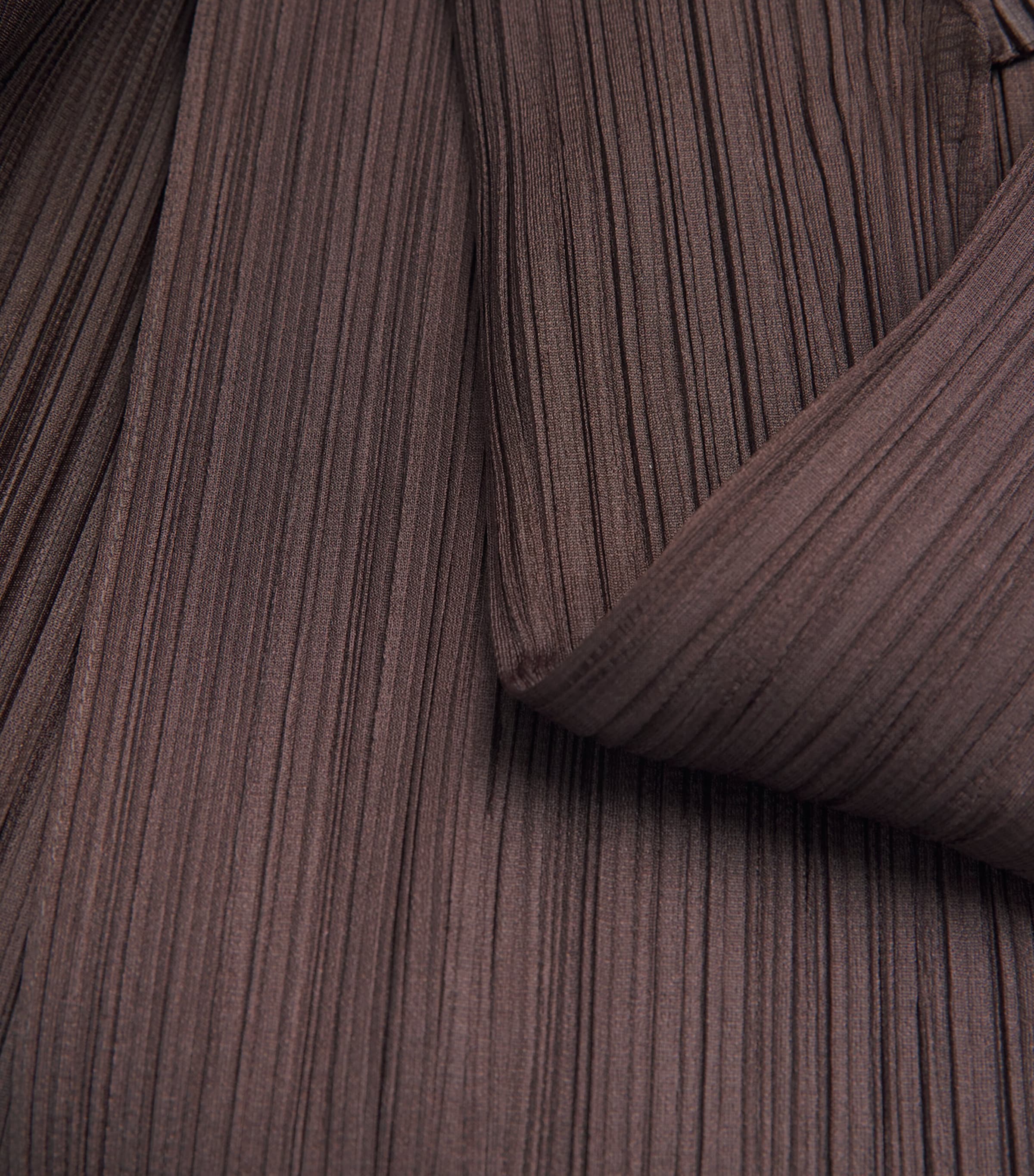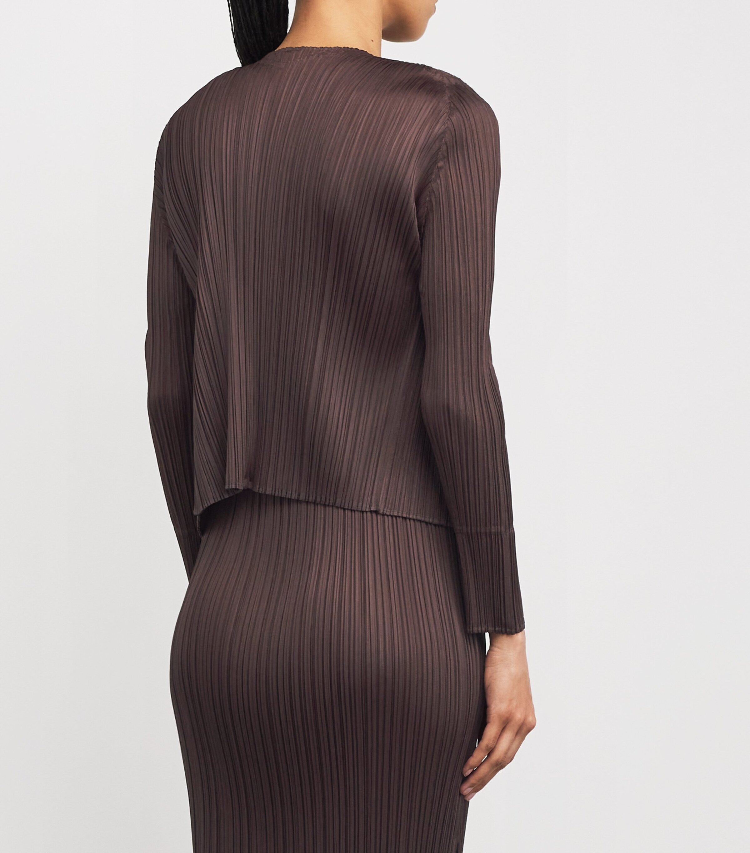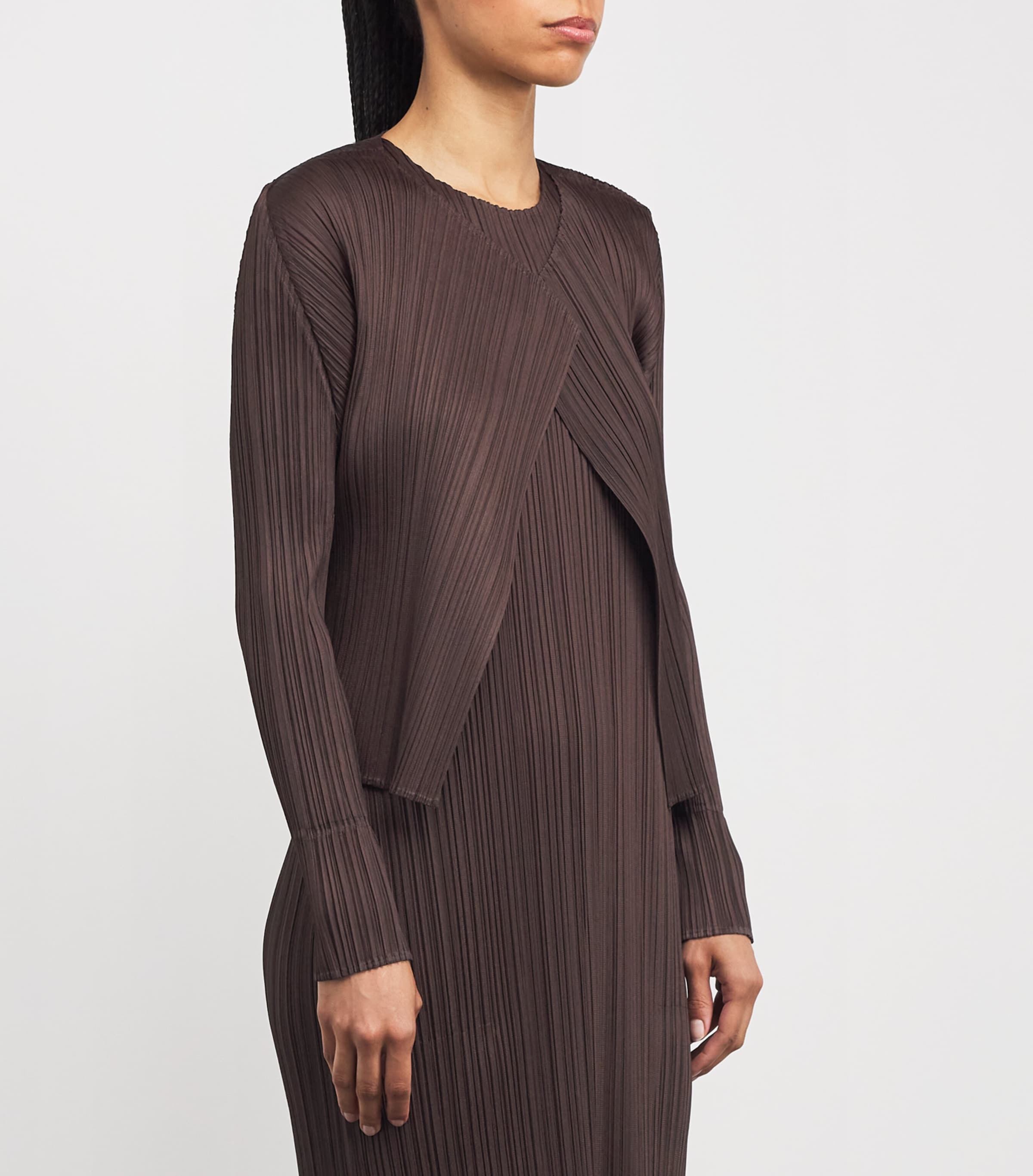 The Monthly Colors series from Pleats Please Issey Miyake always offers a playful start to the season, inviting you to align your wardrobe with nature’s shifting tones. This cardigan is part of the March collection, rendered in one of the month’s signature shades – dark brown – and crafted from a single piece of pleated fabric, rich in depth and dimensional texture.