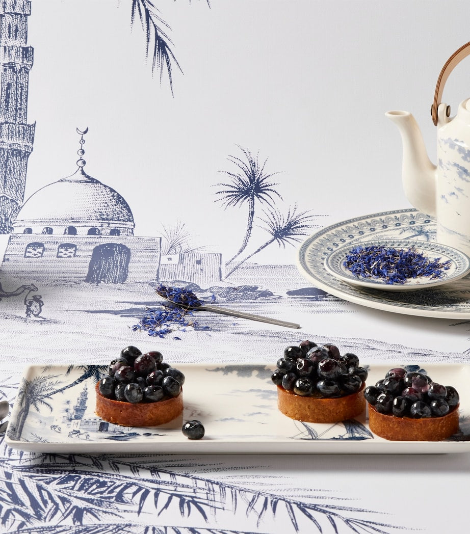 Gien showcases its appreciation for eclecticism with this two-piece bowl collection, reinterpreting the Toile de Jouy–style pastoral scenes often found on traditional English ceramics through its own distinct lens. Each bowl bears a unique design, rendered in classic blue-and-white transferware – a ceramic technique in which engraved copper-plate designs are first transferred to paper, then applied to the pottery surface before firing, imbuing your tablescape with artisanal flair.