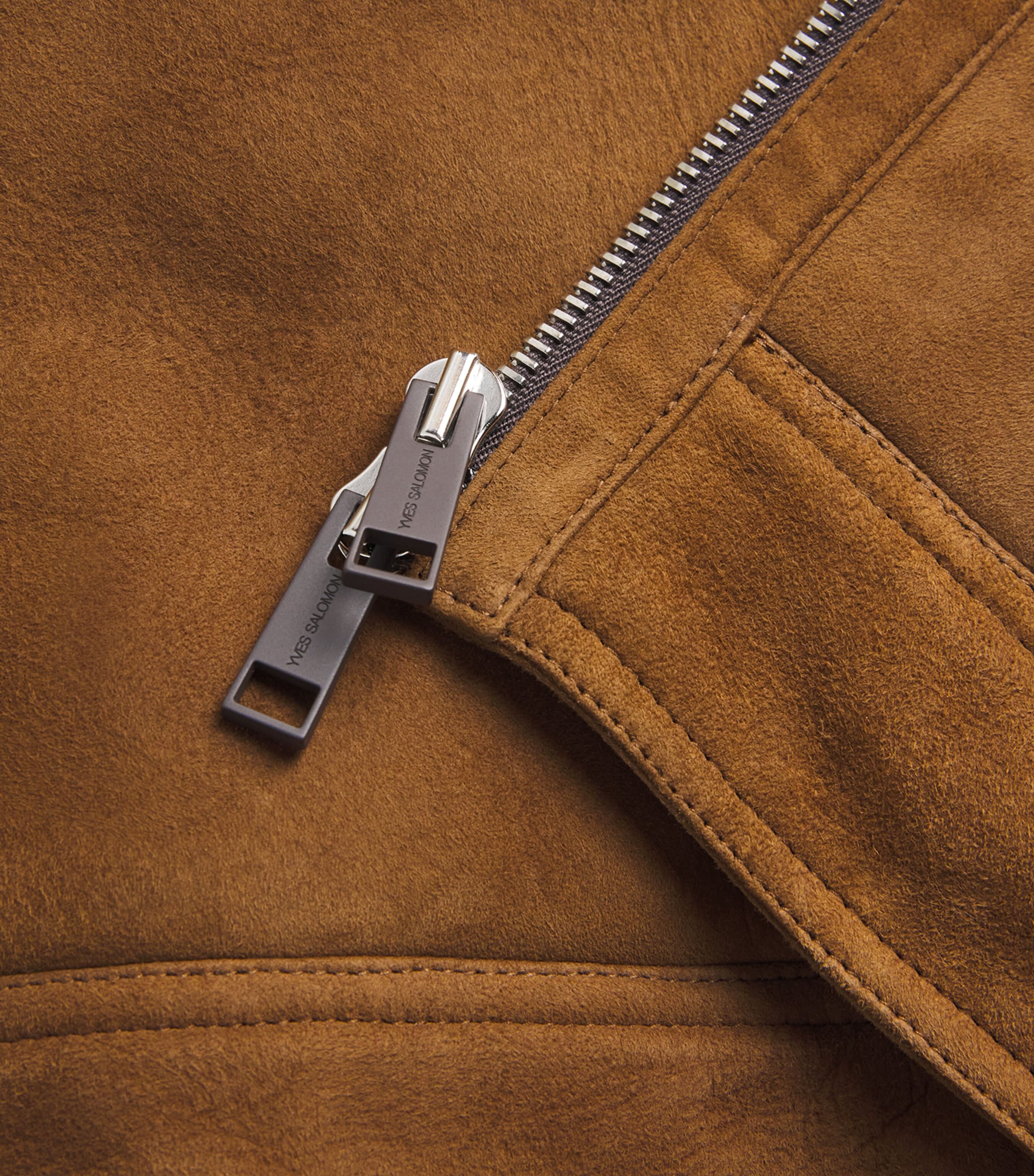 Chilly days call for shearling linings. Bringing together aspects synonymous with aviator and bomber styles, this jacket from Yves Salomon is a refined addition to your outerwear rotation. The brand plays with textures by combining a smooth suede outer with a rib-knitted spread collar and fluffy shearling interior.
