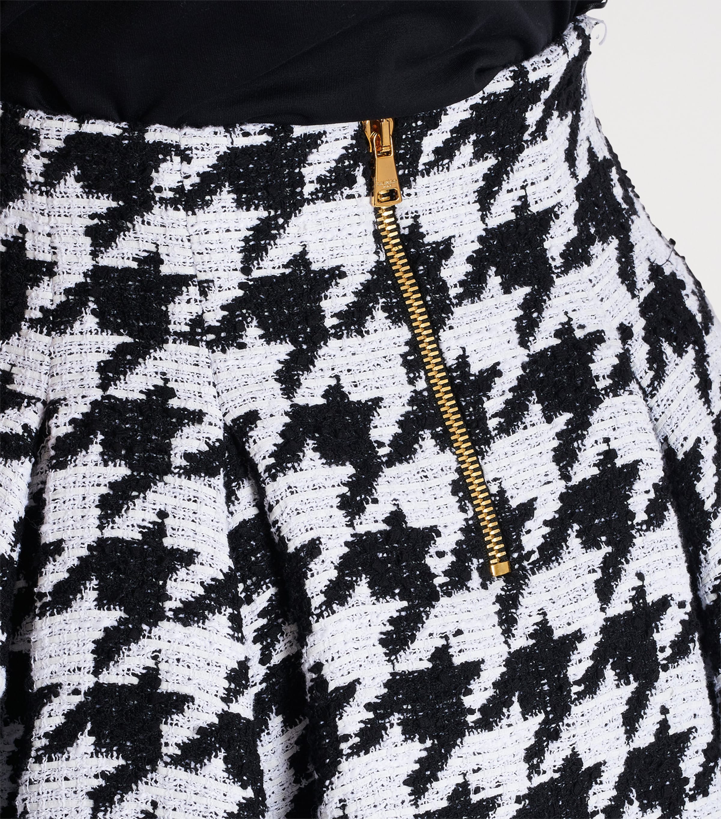 Houndstooth tweed has long been a classic textile pattern, but it was Olivier Rousteing’s use in the early 2010s that revealed its contemporary, stylised potential. This tweed mini skirt pays homage to the designer’s formative years at the Maison, complementing the punchy design with oversized, sculptural pleats and gold-tone hardware.
