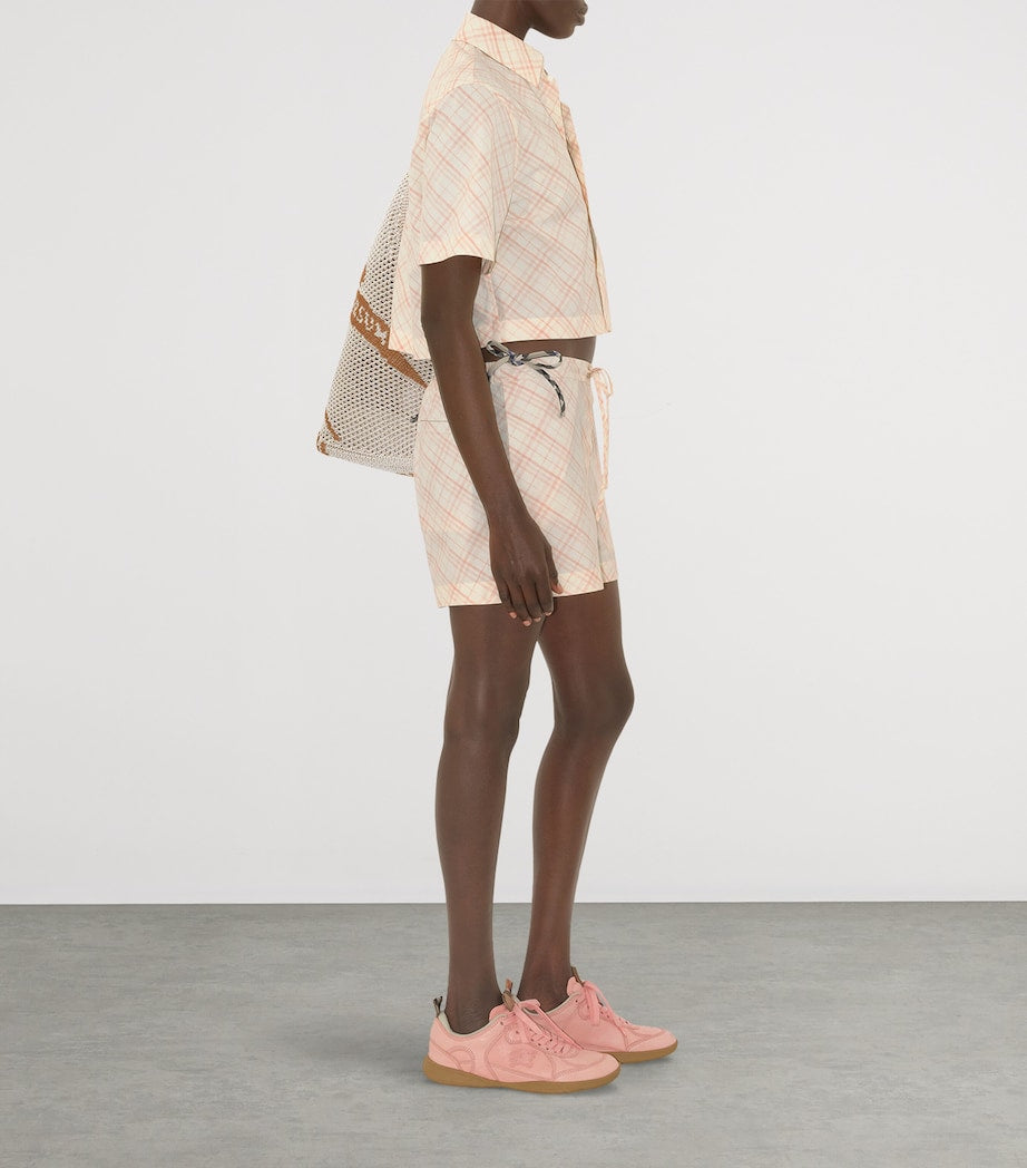 Crafted in Italy from crisp cotton poplin, this cropped shirt reimagines the iconic Burberry check – a heritage House code first introduced as a lining in a 1920s trench coat. With its sharp silhouette and short sleeves, it brings a bold, contemporary twist to a century-old symbol of British design.