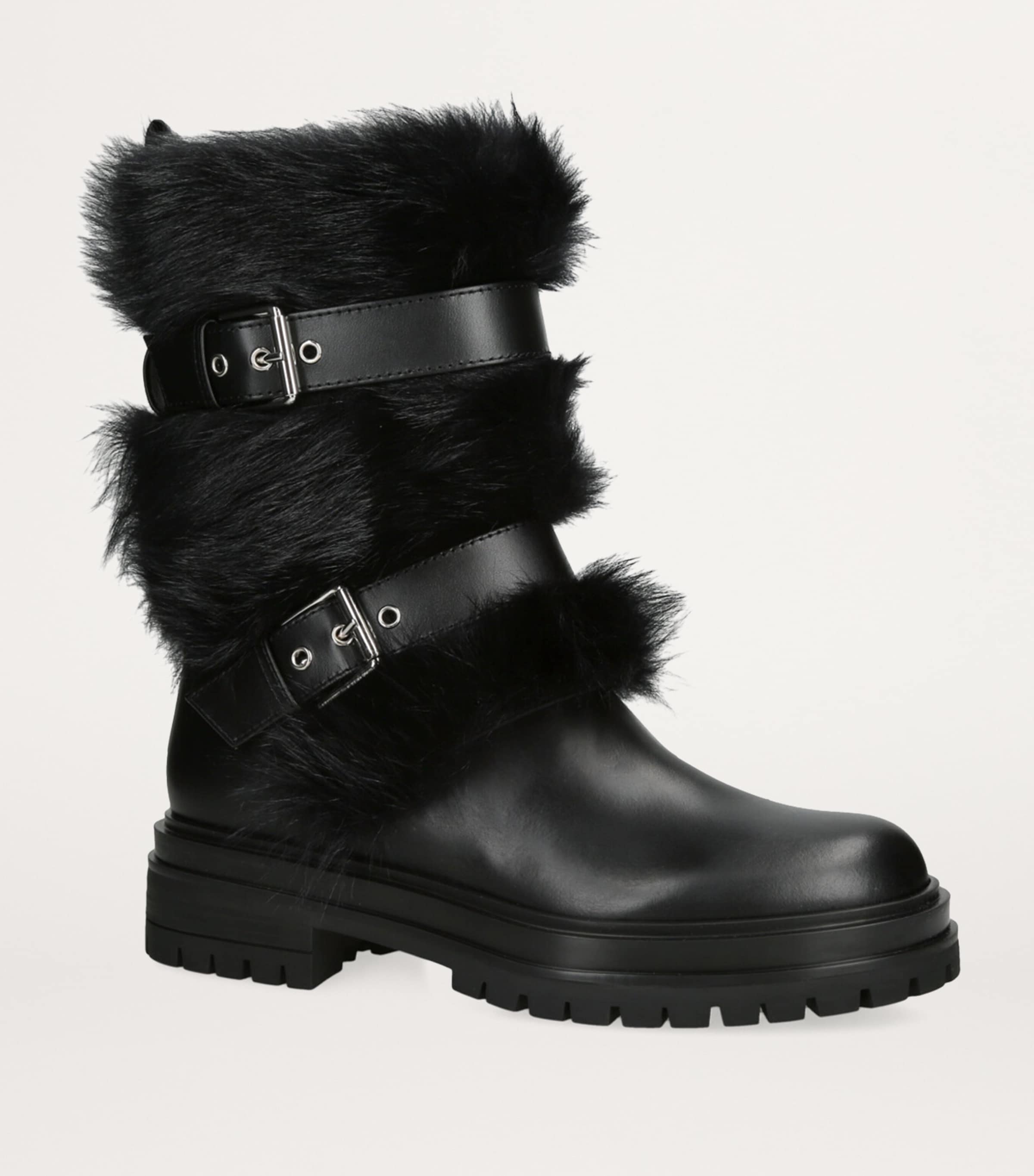 Gianvito Rossi Black Shearling-Trim Maverick Biker Boots 40