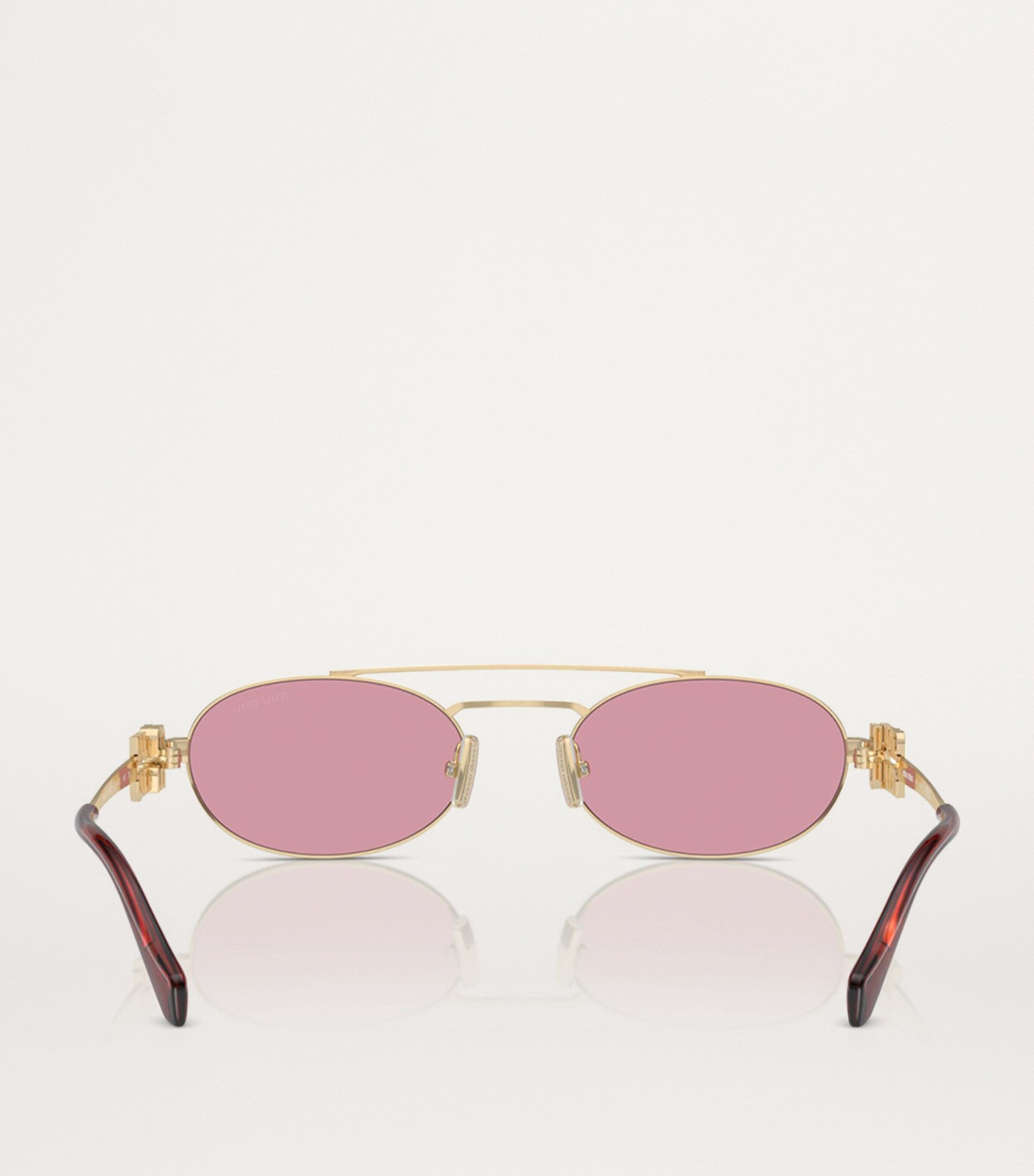 Accessorise the Miu Miu way. Embrace Miu Miu’s focus on modern femininity with the dainty design of these oval sunglasses. Expertly made in Italy with a lightweight frame, the pair are branded with logo lettering and tipped with tortoiseshell-effect acetate accents for a comfortable feel.
