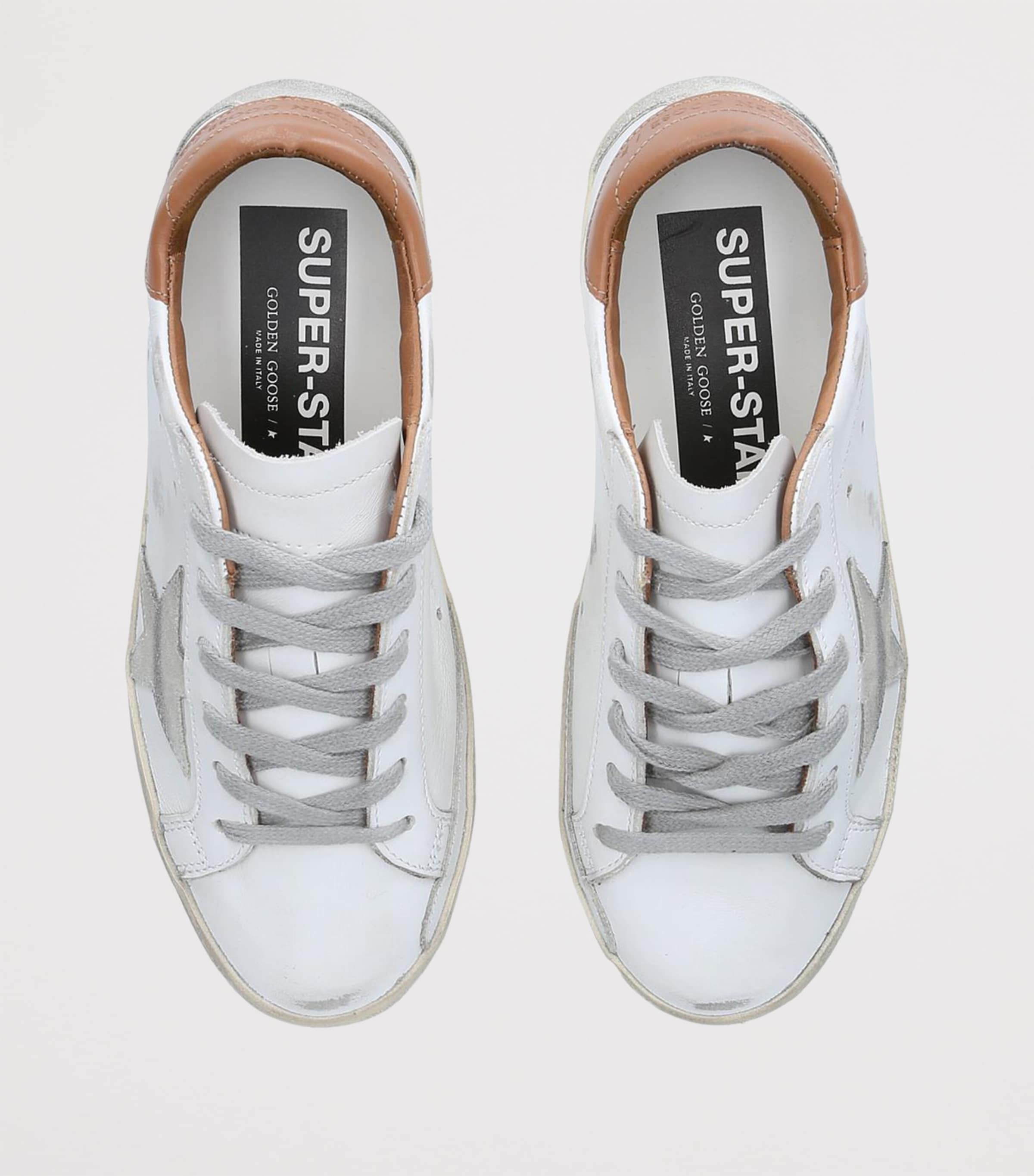 The coveted Super-Star sneakers from Golden Goose are the embodiment of the label's creative approach towards your casual rotation. Crafted in Italy from pure leather, the pair is accented with distressed detailing to the sole, while the signature star appliqué to the side offers a further note of interest to this sportswear-inspired classic.