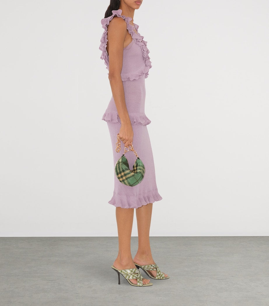 In a reimagining of traditional House codes, Burberry offers a striking shoulder bag crafted from metallic mesh, evoking the brand’s trademark check design with a contemporary, flashy flair. Its straps are looped with a T-bar fastening – a sought-after favourite in antique and vintage design – to create the signature ‘b’ motif in a subtle nod to the storied heritage which underpins the brand’s innovative craftsmanship.