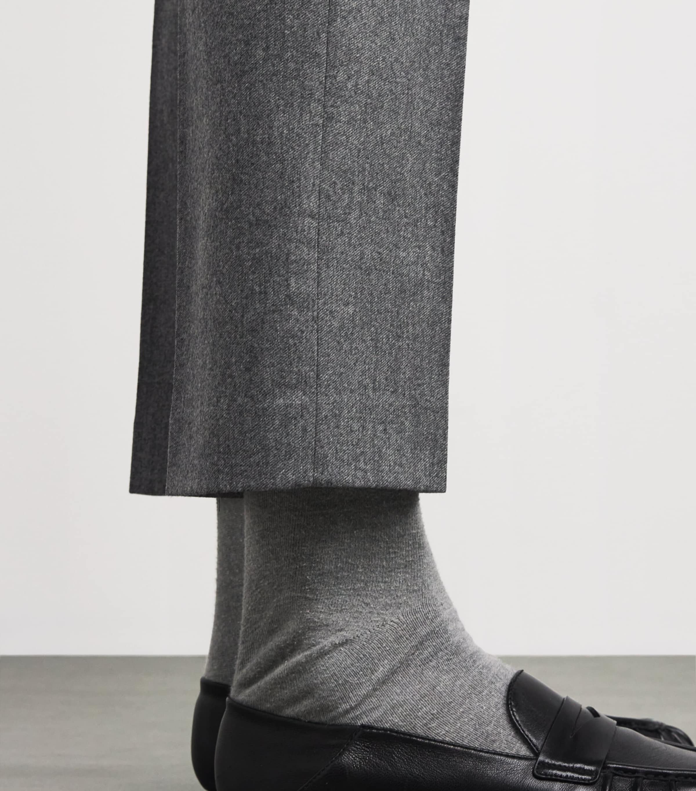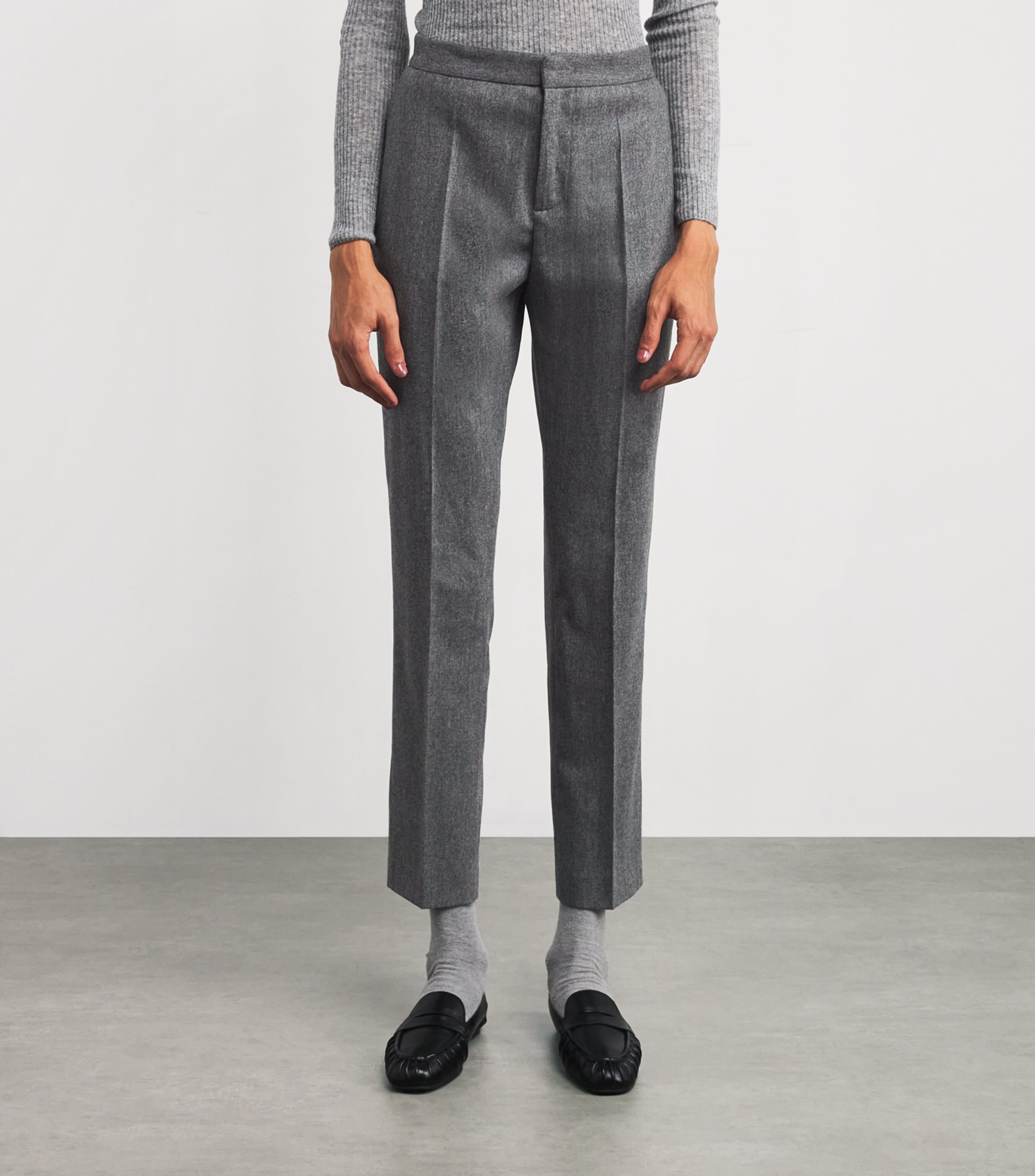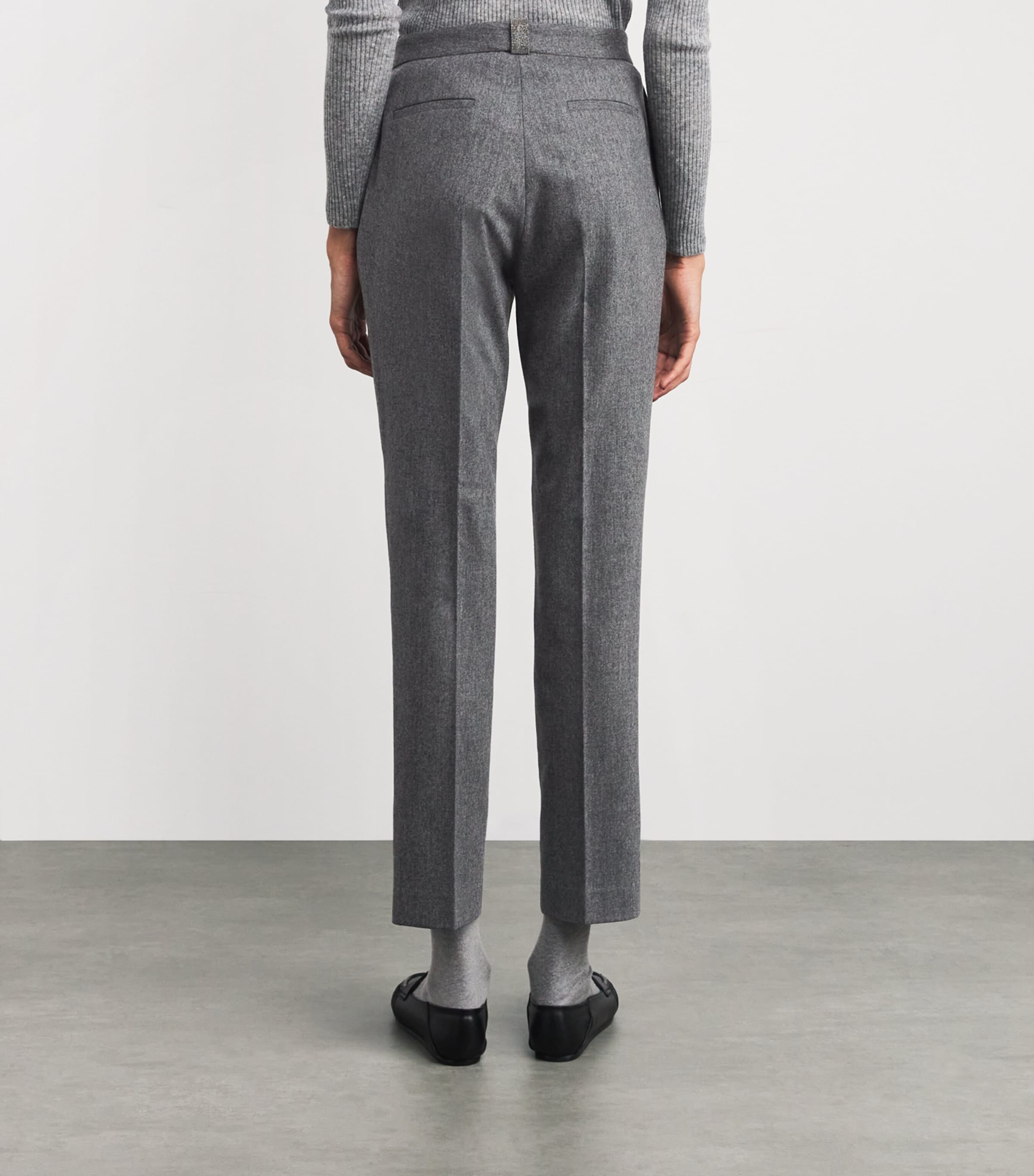 Grey Wool-Cashmere High-Rise Straight Trousers