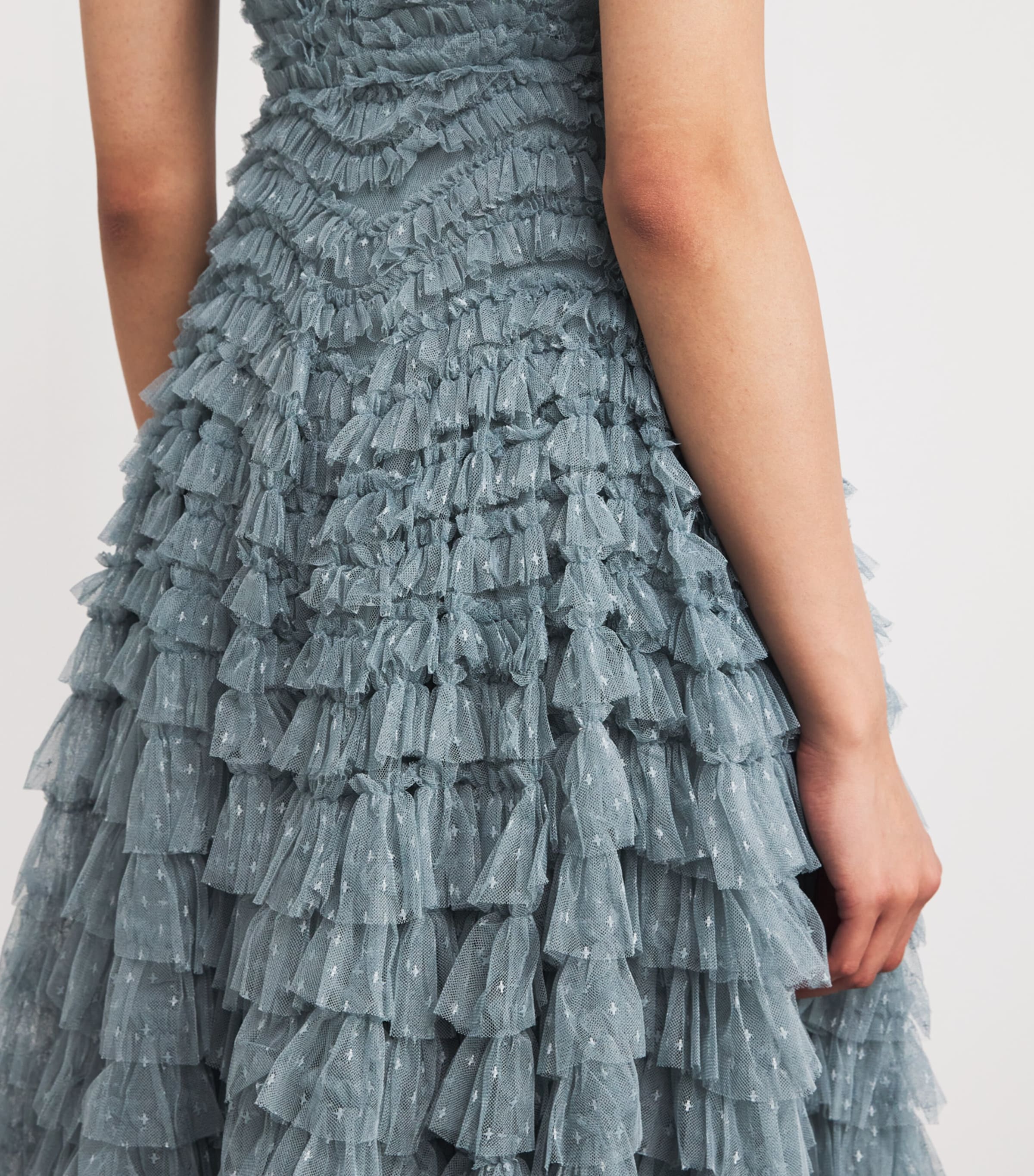 When it comes to a design from Needle & Thread, there’s always so much more than meets the eye. So while the cascading ruffles of the strapless Hattie maxi dress are no doubt alluring, it’s the internal corsetry and elastic rim at the neckline – perfect for added grip – that take this piece to the next level.