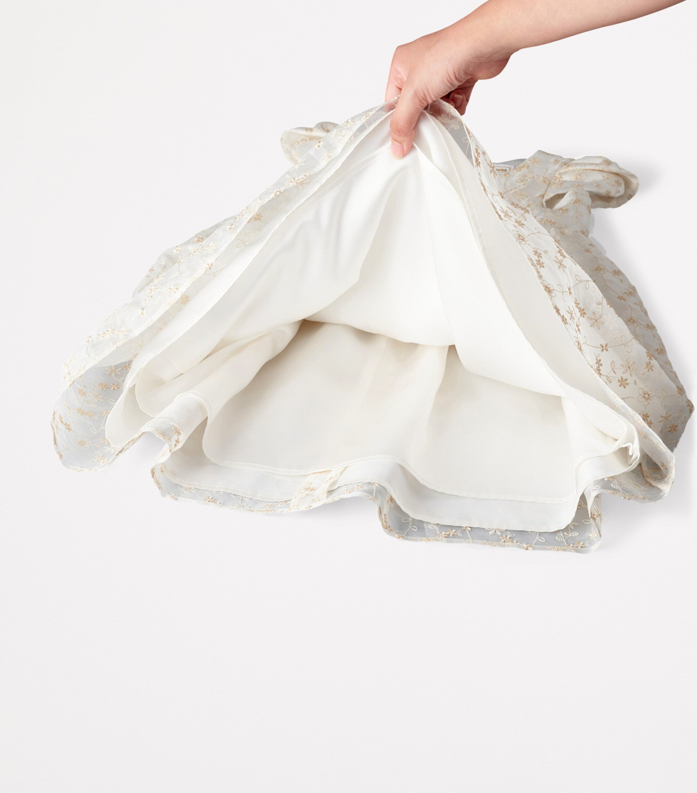 For childrenswear with a truly uncompromising level of craftsmanship, look no further than Japanese stalwart Miki House. This dress, for example, drapes a fluid silk from a modest bodice to a wide, statement-making skirt, highlighting the intricate floral embroideries that run across the piece.