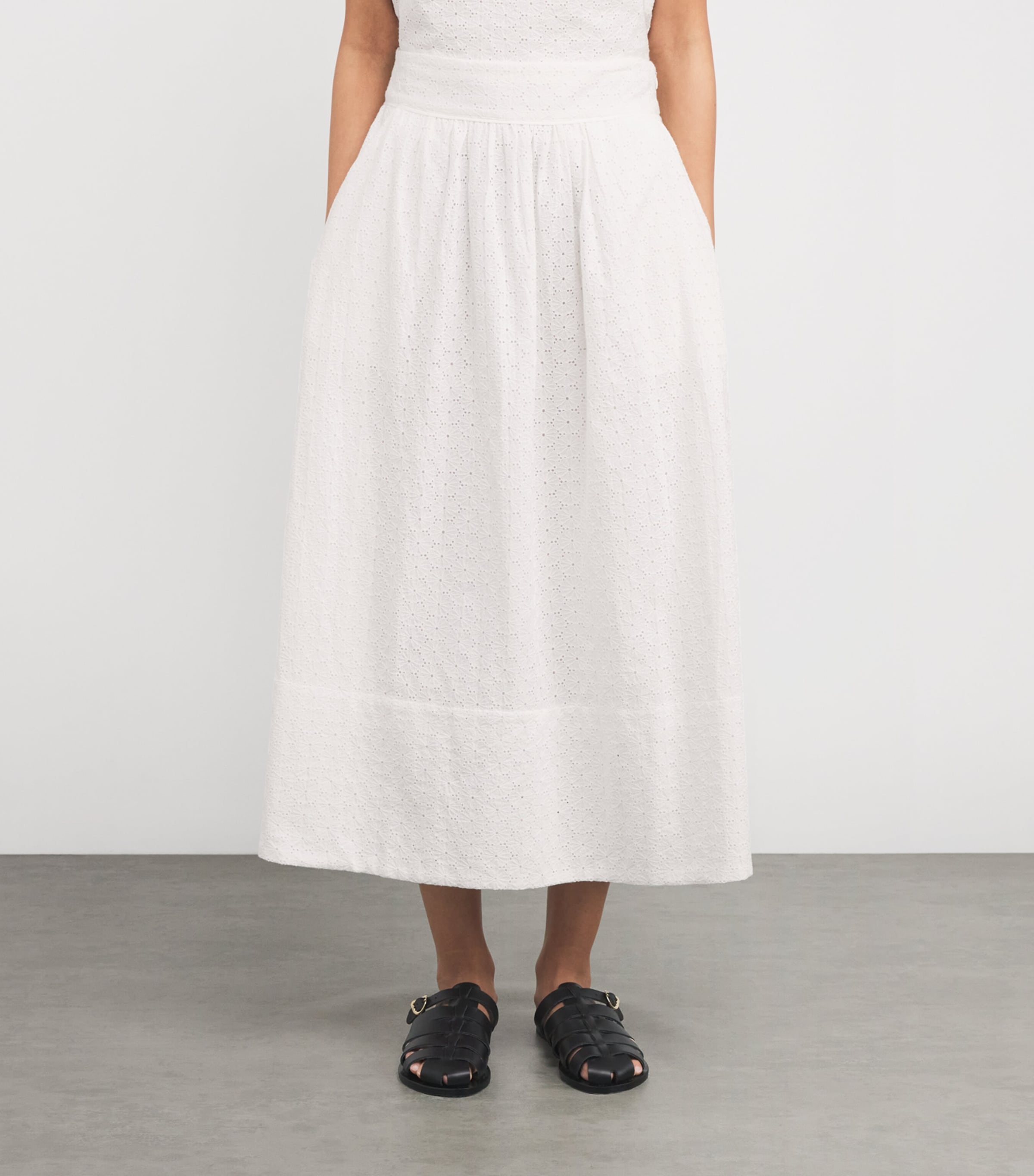 PAIGE may be best known for its denim, but for the spring/summer season, the brand proves it’s just as versed in elegant styling. Cut from pure cotton for breathable wear, the Ojai midi skirt blooms with floral eyelet detailing on the A-line silhouette, lending a romantic character.