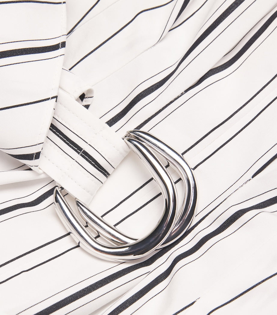 A piece made in New York City that certainly channels the metropolis' sophisticated character. Made from crisp cotton poplin, the Nansi midi dress by Adam Lippes offers graphic tailoring through a feminine lens. The shirt-inspired silhouette has an asymmetric hemline and a belt with thin stripes running through its centre, while the contrasting horizontal marks cut a striking geometric contrast to the directional stripes on the dress itself.