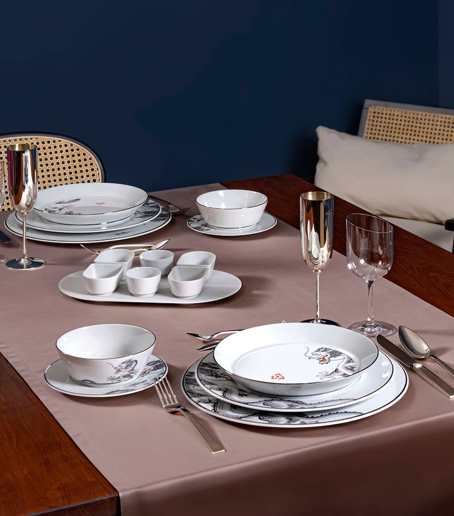 A leading purveyor of porcelain manufacturing since 1710, Meissen is internationally renowned for its artisanal creations: from precious tableware to vases and sculptures. For the Lucky Dragon series, which includes this exquisitely crafted side plate, the German heritage brand collaborates with Chinese designer Zhuoyu Hou to welcome the Year of the Dragon. The mythical creature guarding its interior combines the elements of nine animals, lending the perfect contrast to the Vitruv platinum rim.