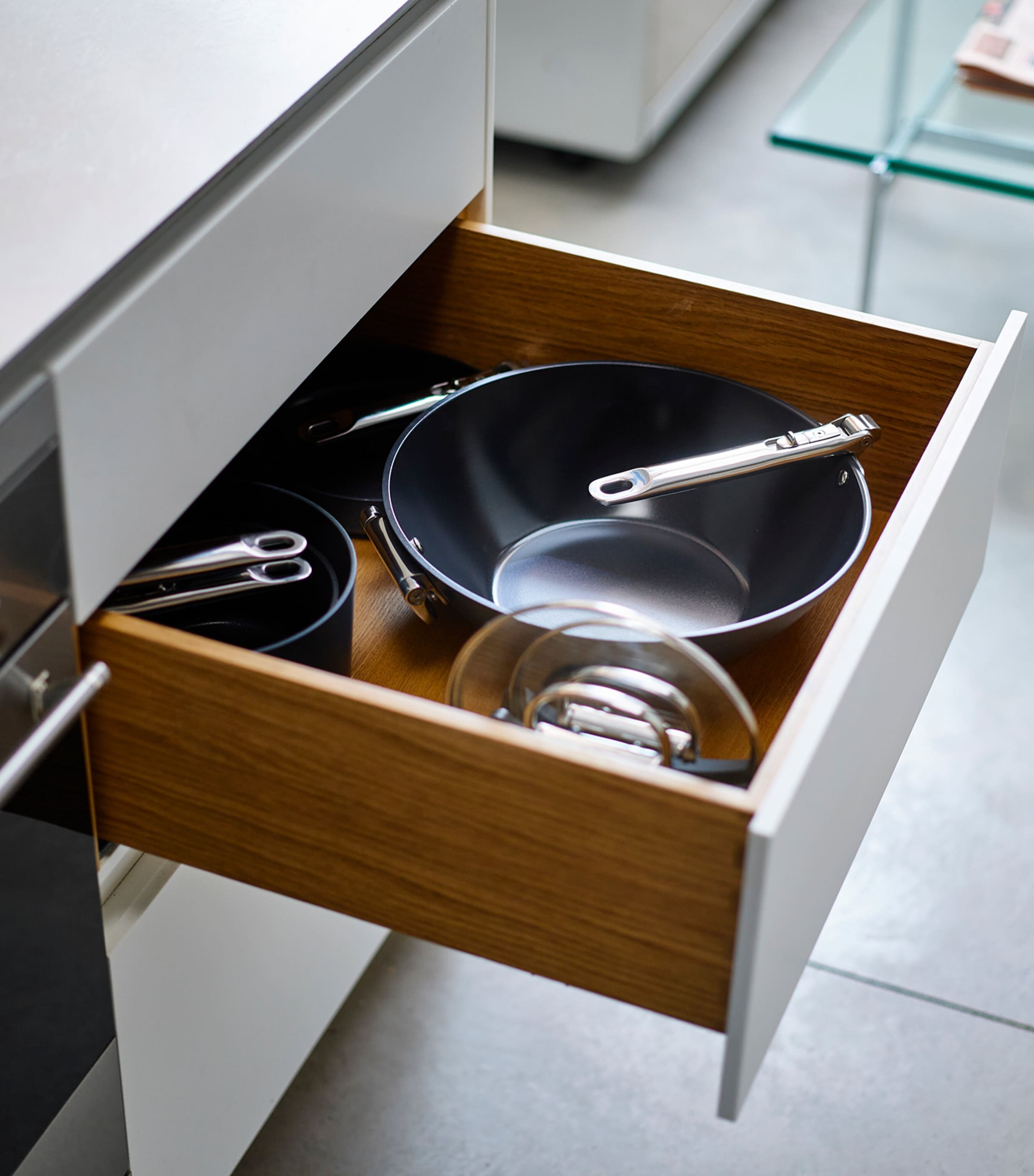 As life becomes more cluttered, the never-ending need for space when it comes to the kitchen is a problem that everyone has faced, but Joseph Joseph has the solution. The brand's new Space collection features a revolutionary handle that can be folded to create extra room for everything you need. This wok combines professional quality cookware and the brand's stainless-steel swinglock handle to create a piece that is functional and space-savvy.