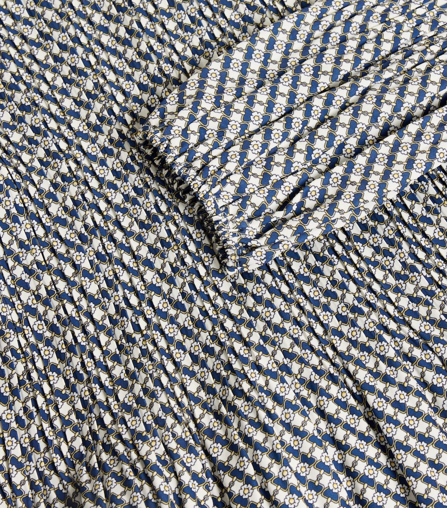 Maje's signature flair for playful prints is evident in this charming mini dress. Fully pleated for graceful movement, it's adorned with a whimsical bow pattern and features a comfortable smocked top complemented by wide sleeves.