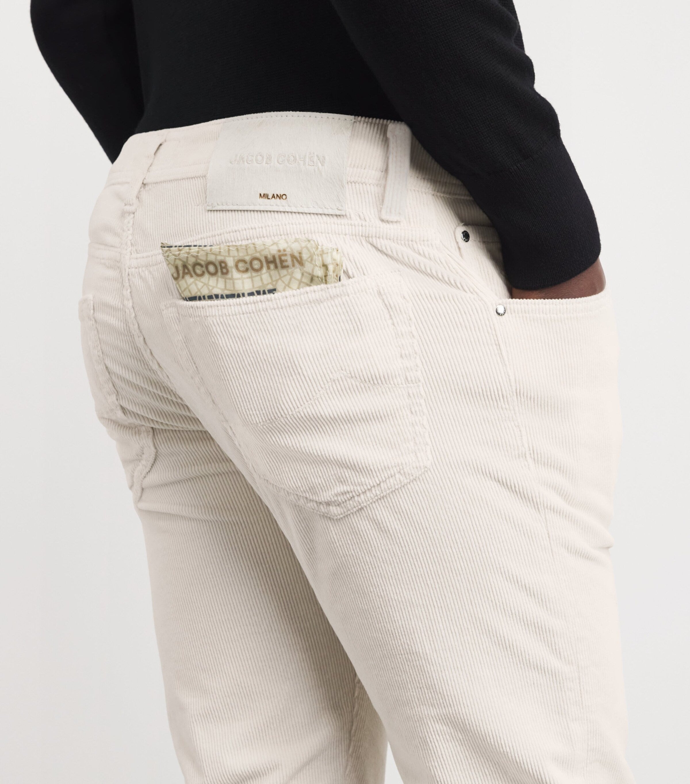 ‘Made in Italy’ has become a coveted label among fashion connoisseurs, and Jacob Cohen’s craftsmanship stands out as a prime example. The Nick tailored trousers are cut from soft, slightly stretchy corduroy, while a slim silhouette ensures a sharp, refined look.