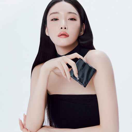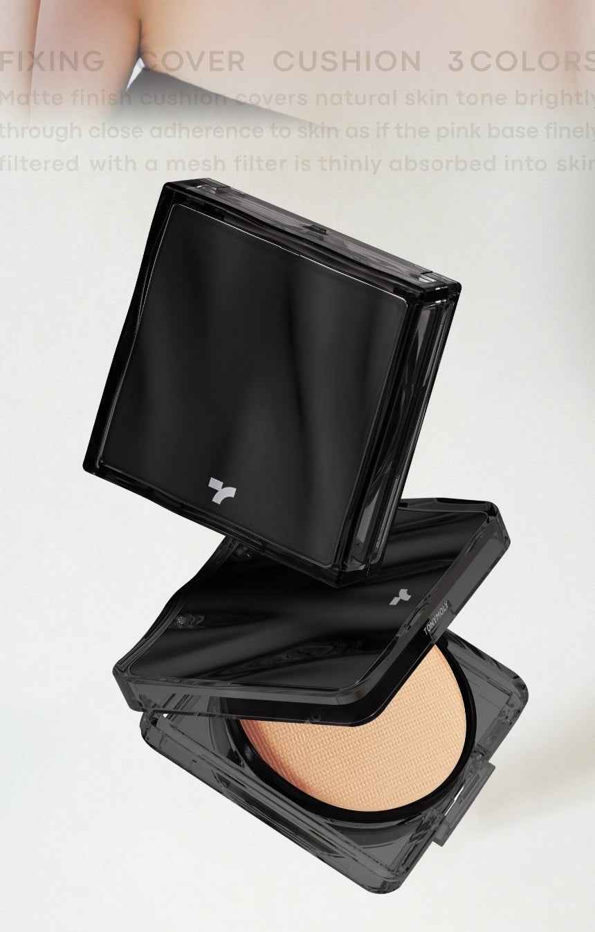 Matte finish cushion covers natural skin tone brightly through close adherence to skin as if the pink base finely filtered with a mesh filter is thinly absorbed into skin.