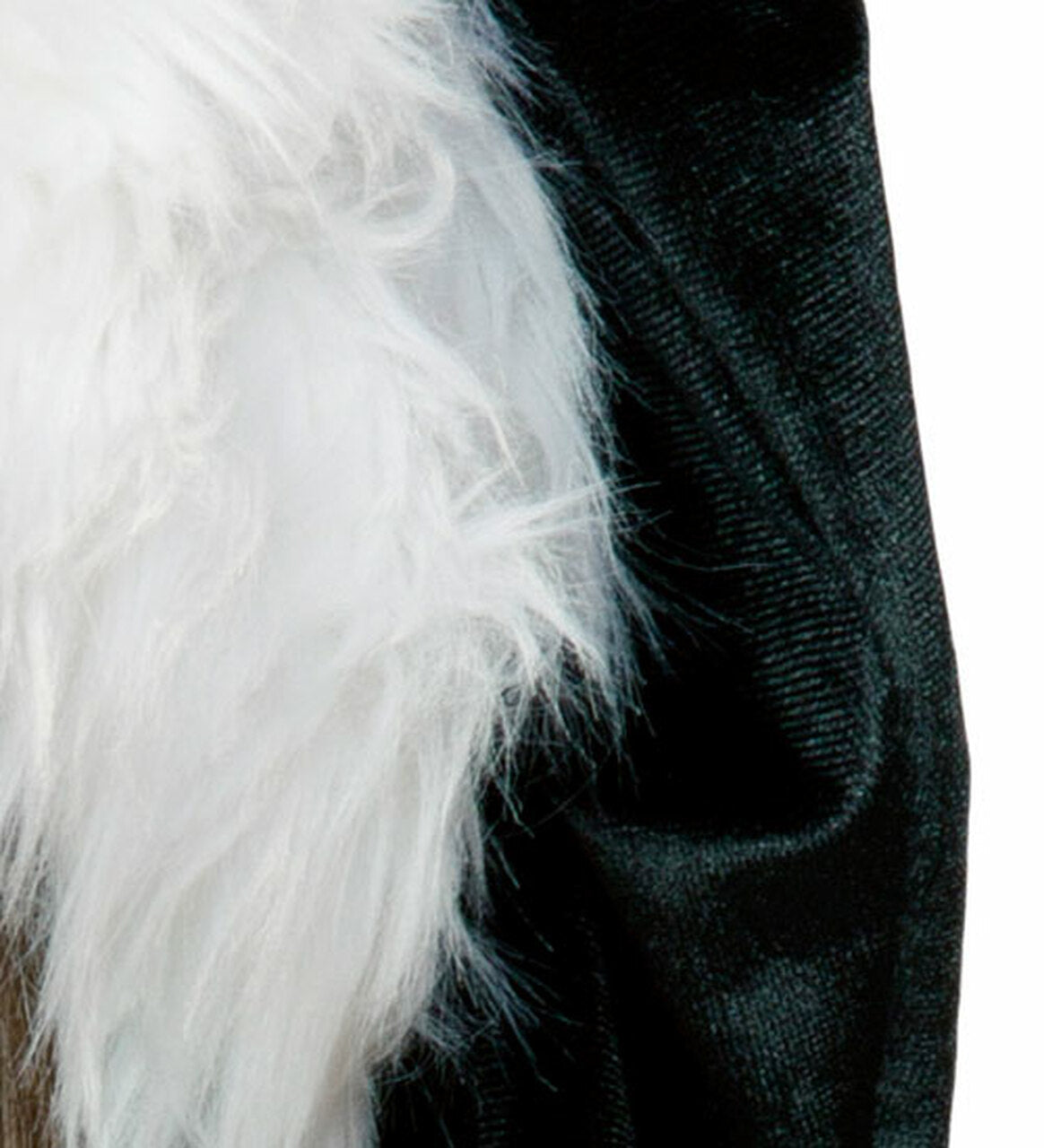 Bu uzun, siyah beyaz kadife ve suni kürkten yapılmış Noel Baba şapkası, her türlü bayram görünümüne mükemmel bir tamamlayıcıdır.