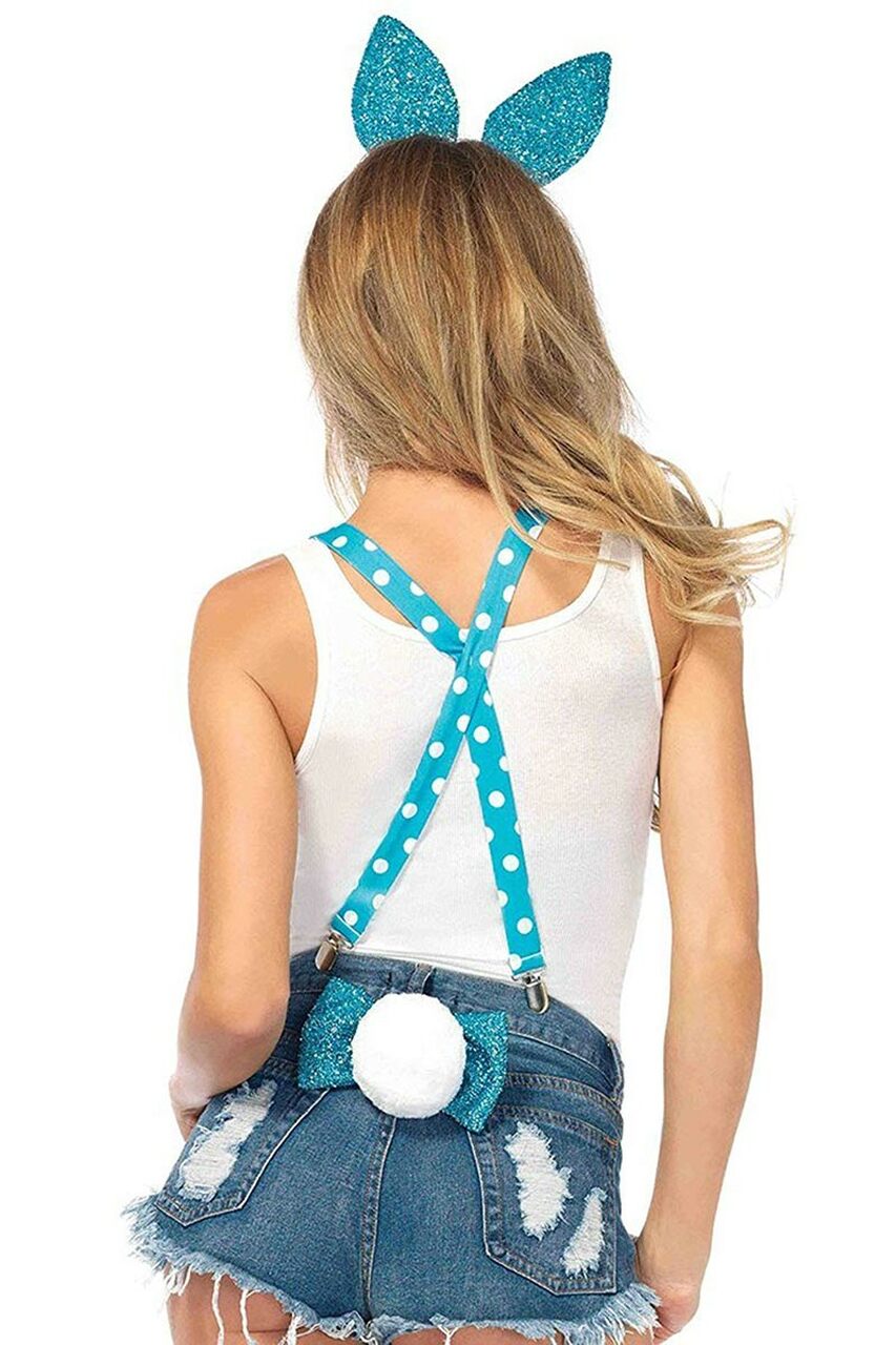 Kendi tavşan kostümünüzü yaratmak için bu Pembe Parıltılı Tavşan Aksesuar Seti'ni kullanın! Hayal gücünüzü serbest bırakın ve bu üç parçalı setle yaratıcılığınızı konuşturun. Set, beyaz puantiyeli pembe askılar, parıltılı fiyonklu büyük pembe bir tavşan kuyruğu ve pembe pullu tavşan kulaklı bir saç bandı içeriyor. Bu aksesuarları birlikte veya ayrı ayrı kullanabilirsiniz. Yaratıcı olun ve bu pembe ve gümüş tavşan aksesuarlarını seksi bir kıyafetle eşleştirerek anında Playboy kapağına layık bir kostüm yaratın!
