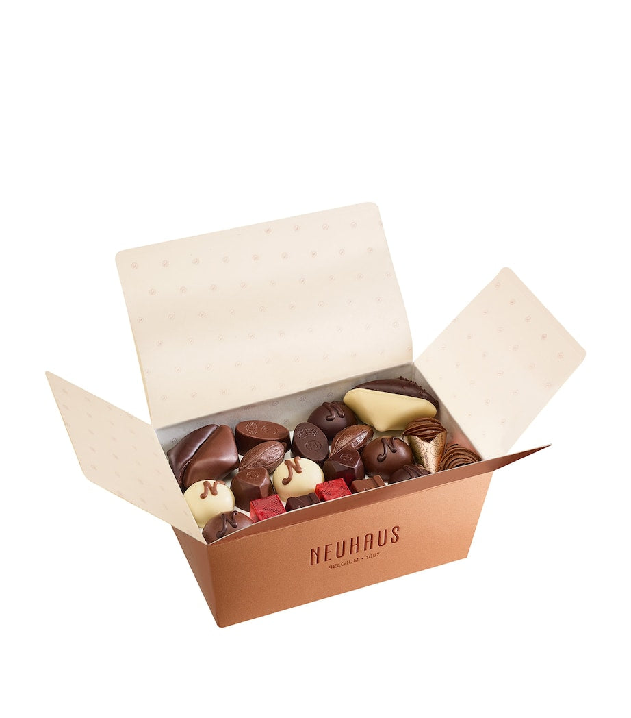 In 1915, a moment of inspiration struck Louise Agostini, Jean Neuhaus Jr’s wife, who came up with an elegant gift box to present Neuhaus’ chocolates and protect them on their journey from gift-giver to giftee. Thus was borne the Ballotin – a Belgian tradition that continues to this day. This one – dubbed The Timeless Masterpieces – is filled with a selection of fresh cream, praliné, ganache and gianduja filled pralines, all of 100% natural origin.