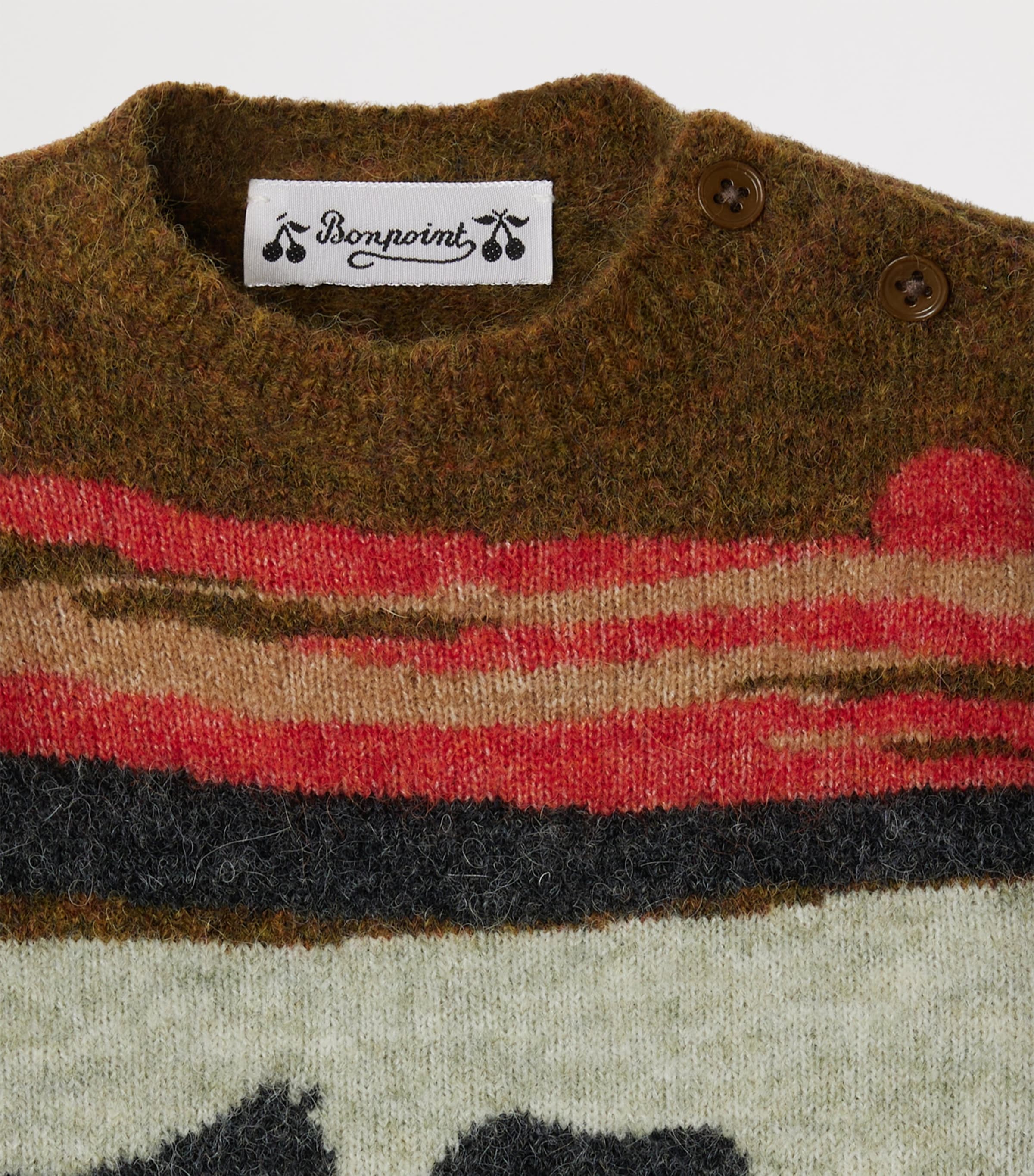 Wool-Alpaca-Blend Animal Sweater (6-18 Months) - kaki fonce / 6 mth